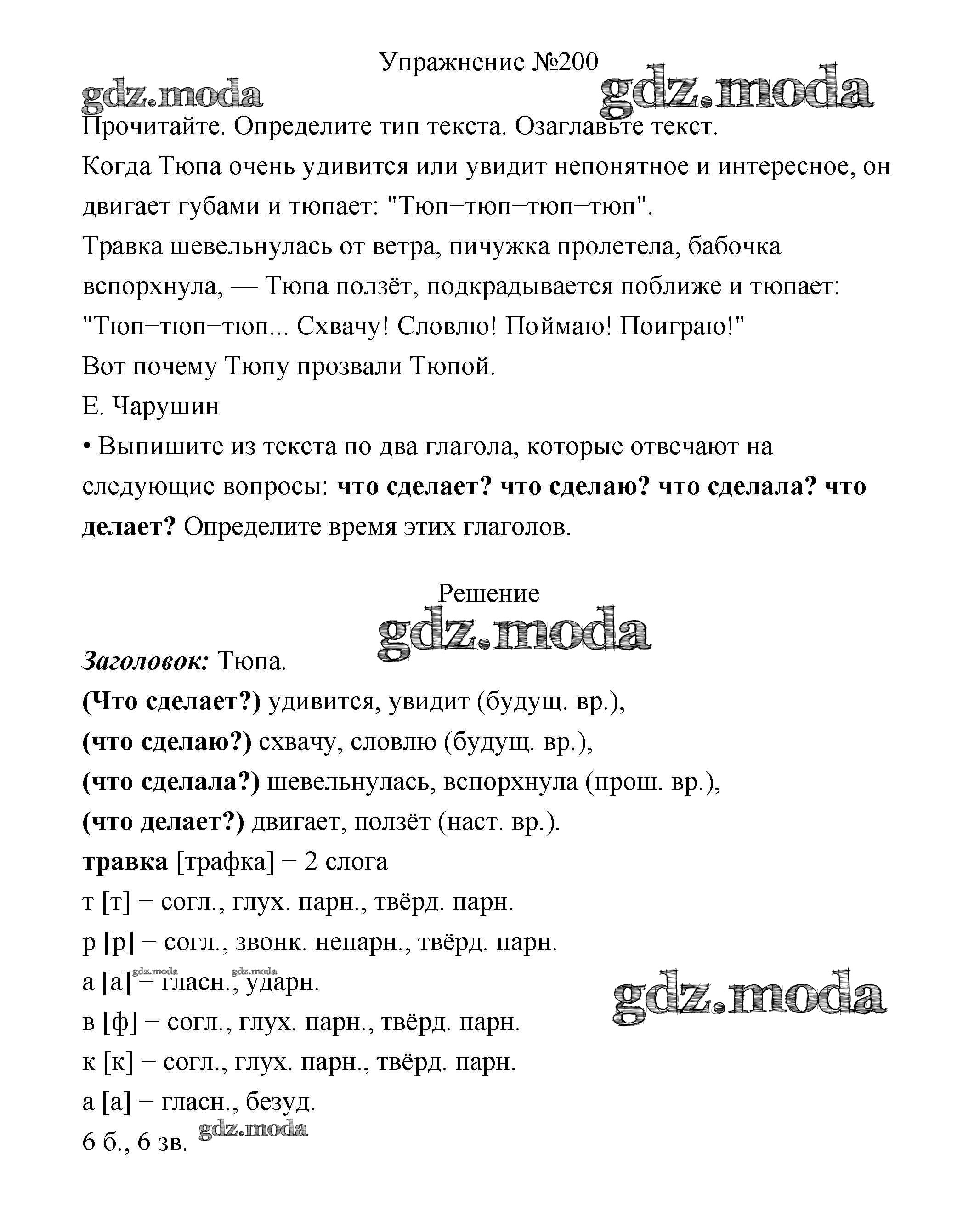 ОТВЕТ на задание № 200 Учебник по Русскому языку 3 класс Канакина Школа России