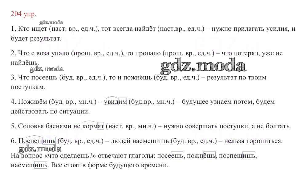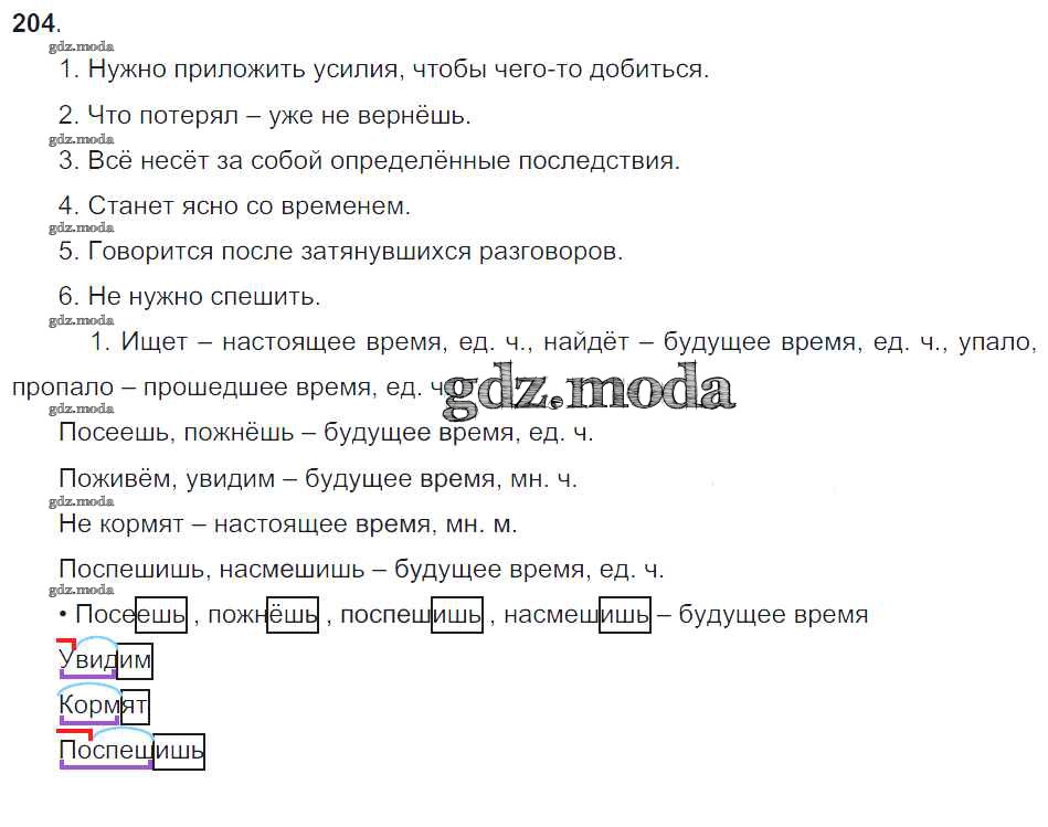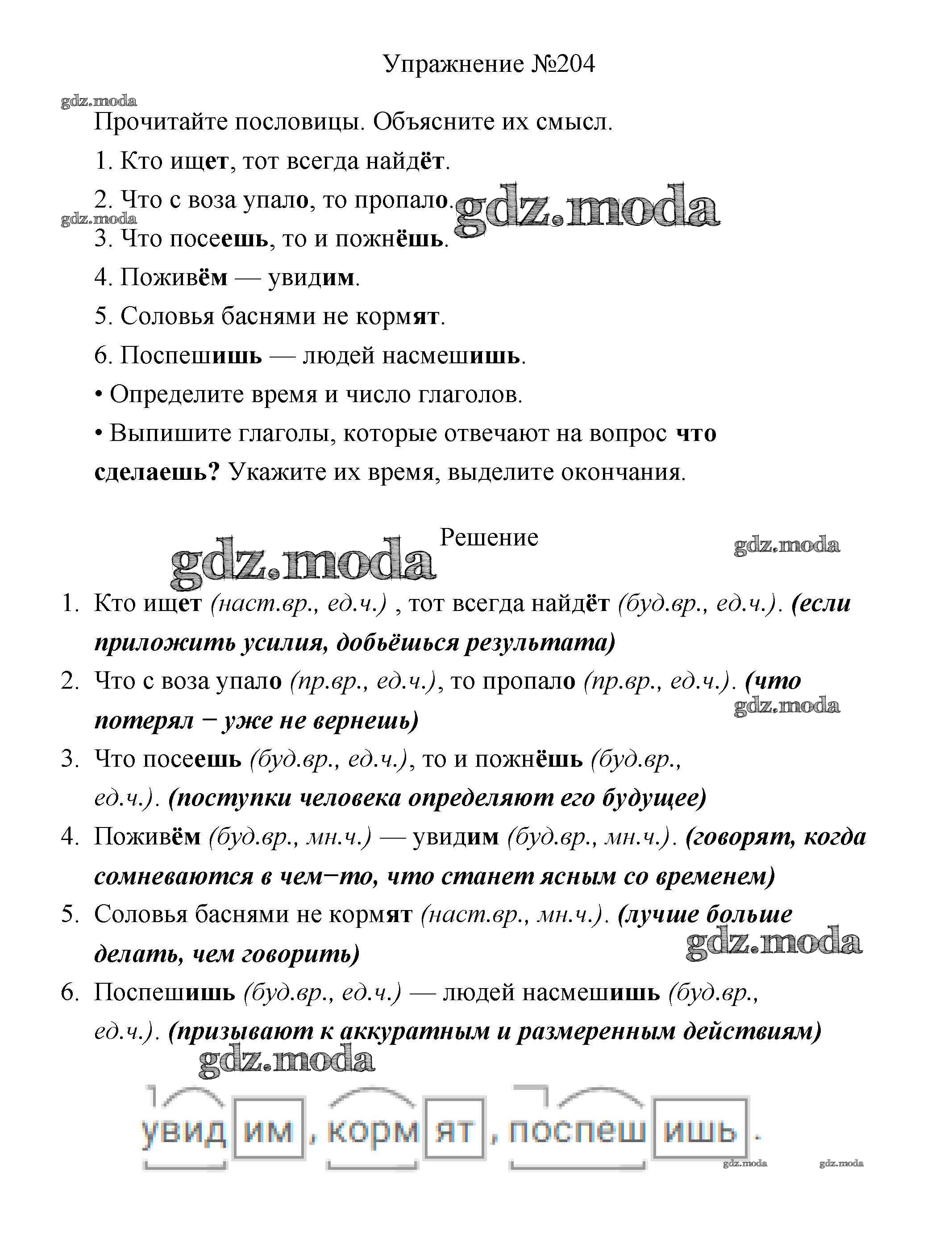 ОТВЕТ на задание № 204 Учебник по Русскому языку 3 класс Канакина Школа России
