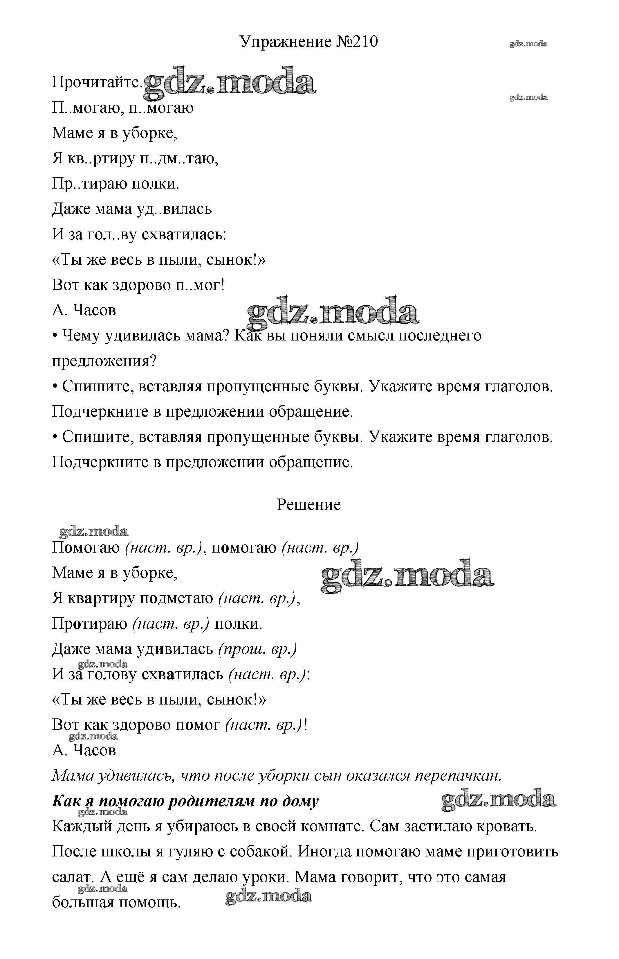 ОТВЕТ на задание № 210 Учебник по Русскому языку 3 класс Канакина Школа России
