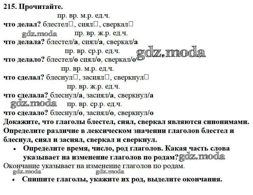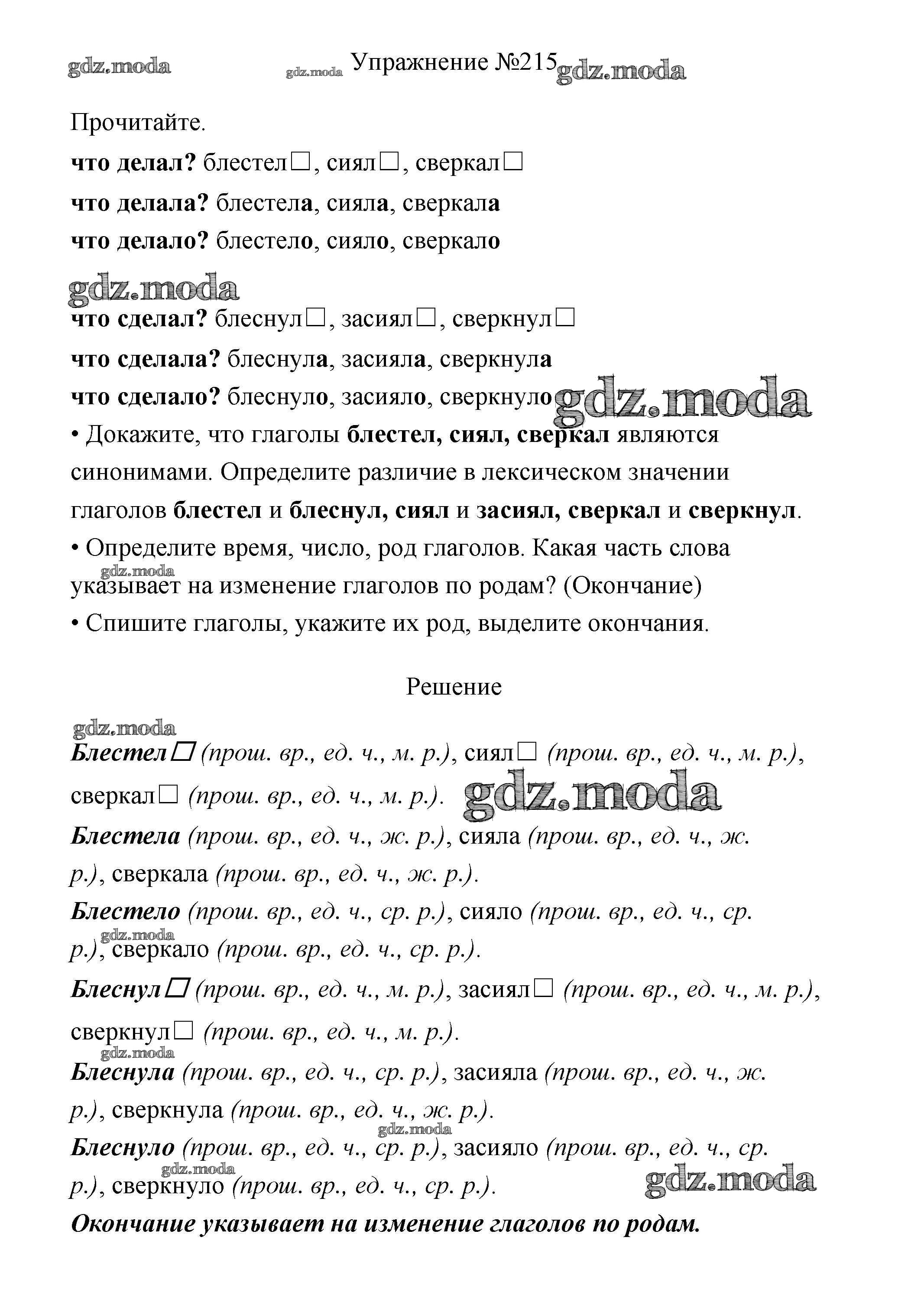ОТВЕТ на задание № 215 Учебник по Русскому языку 3 класс Канакина Школа России