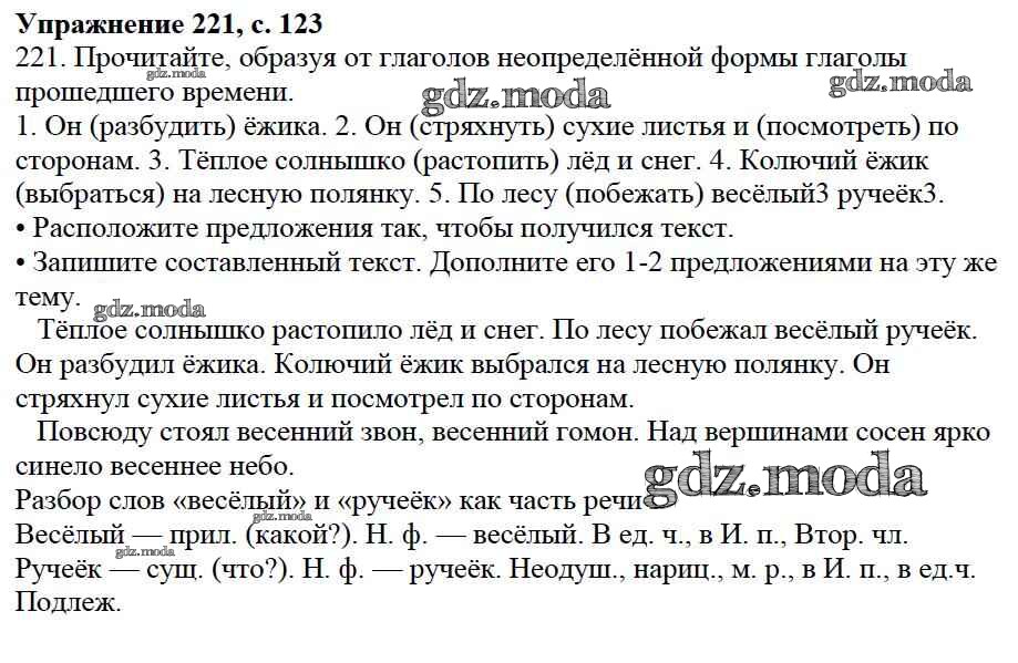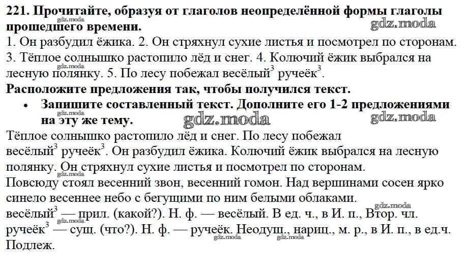 ОТВЕТ на задание № 221 Учебник по Русскому языку 3 класс Канакина Школа России