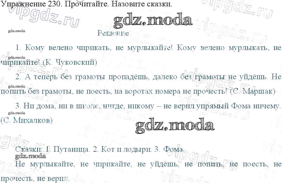 ОТВЕТ на задание № 230 Учебник по Русскому языку 3 класс Канакина Школа России