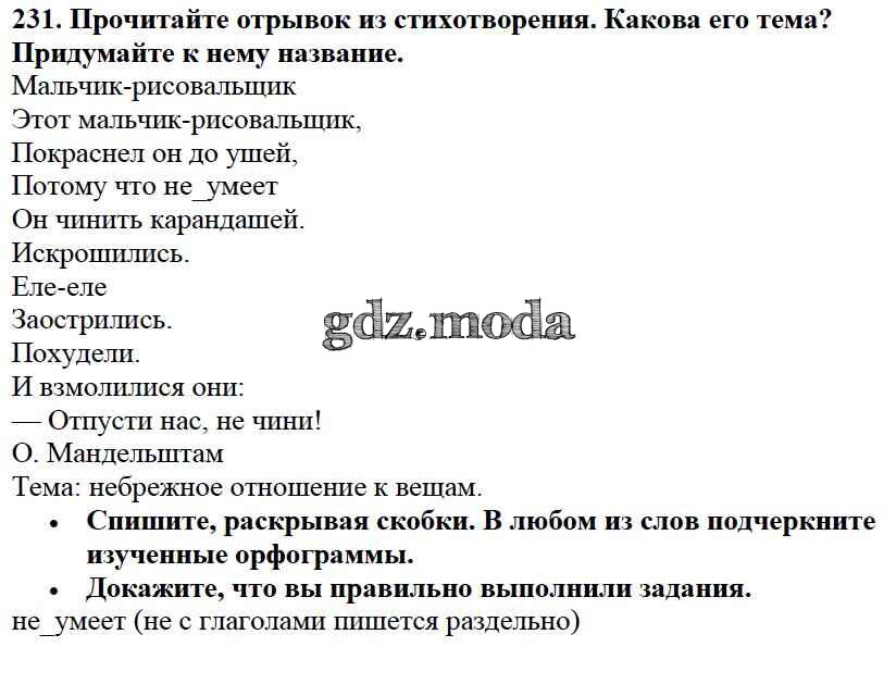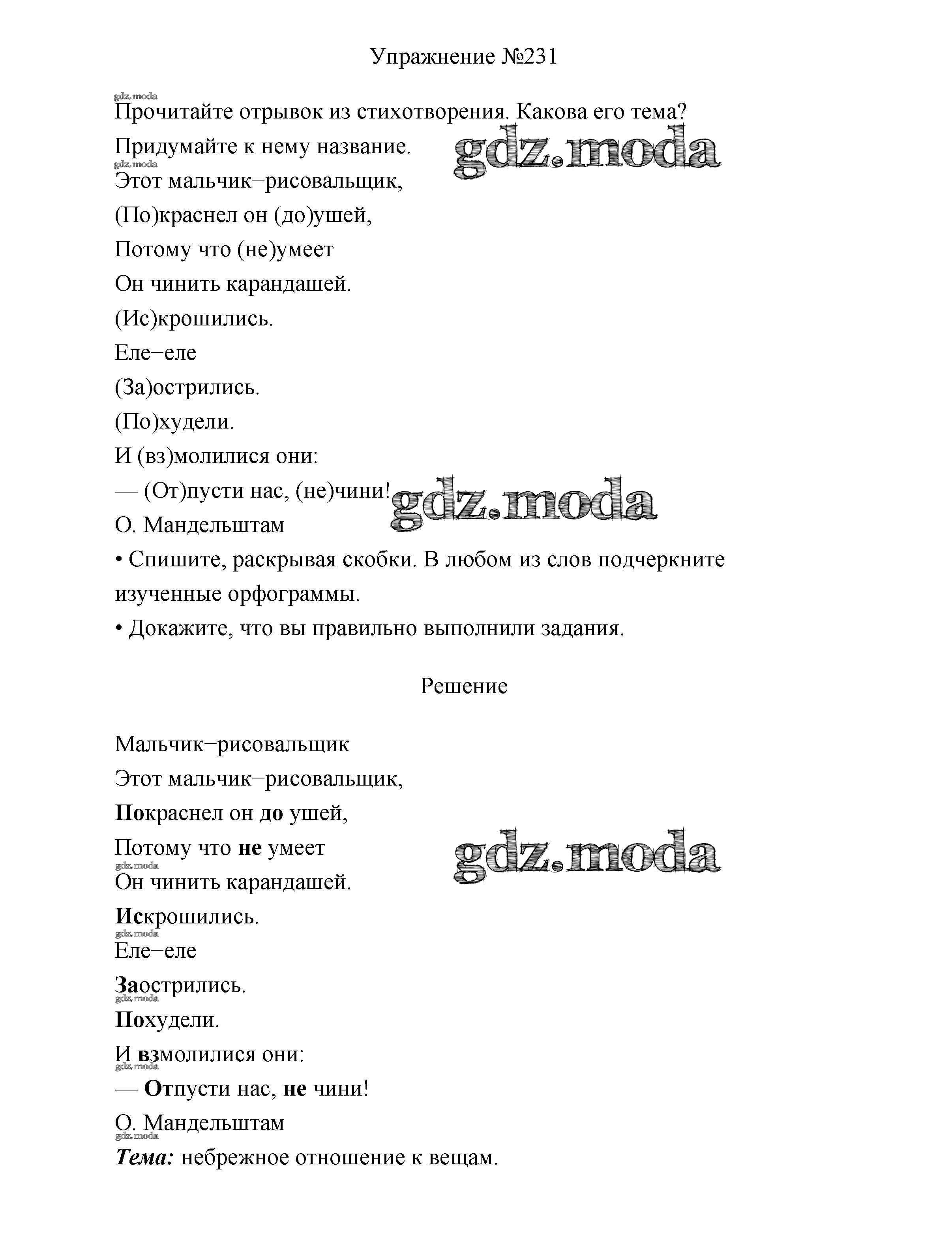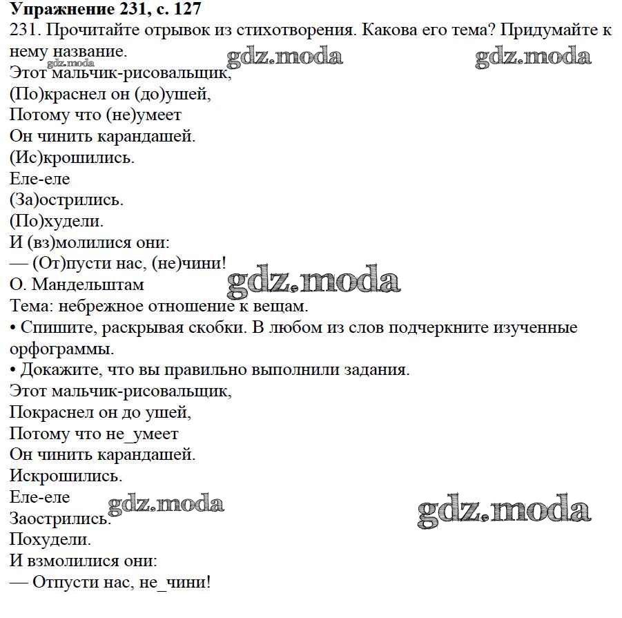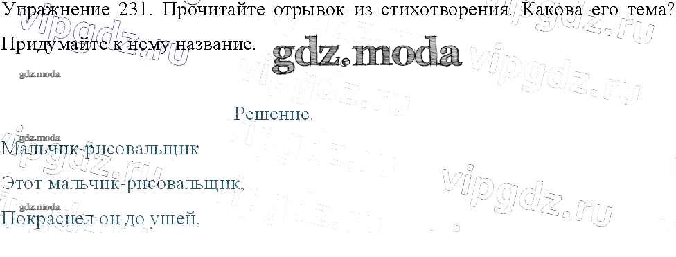 ОТВЕТ на задание № 231 Учебник по Русскому языку 3 класс Канакина Школа России