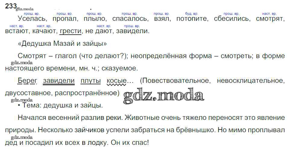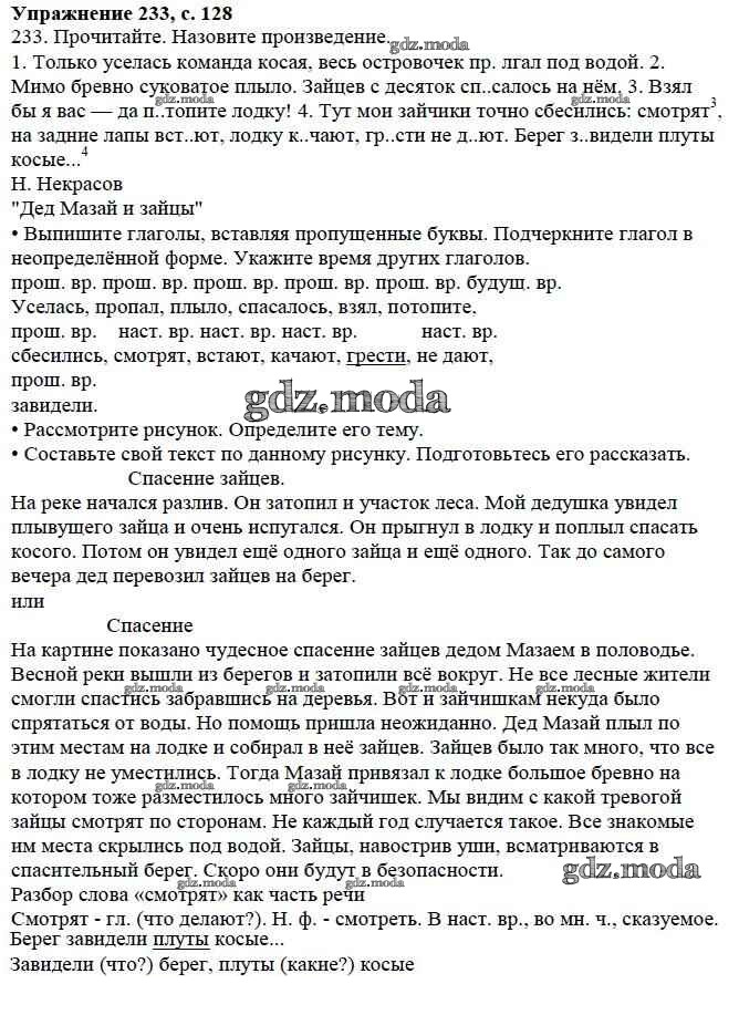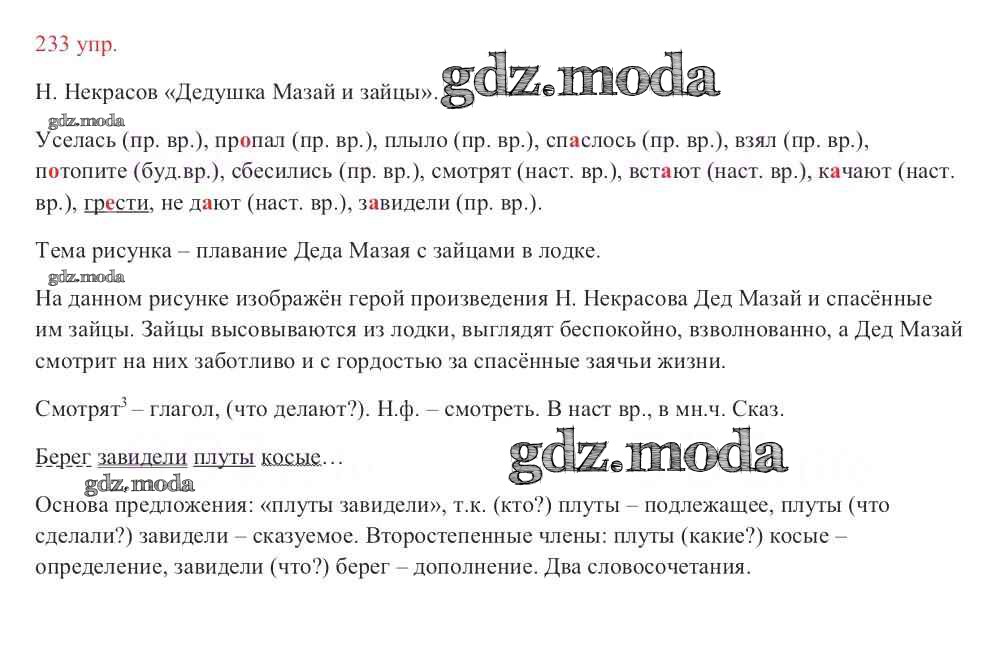 ОТВЕТ на задание № 233 Учебник по Русскому языку 3 класс Канакина Школа России