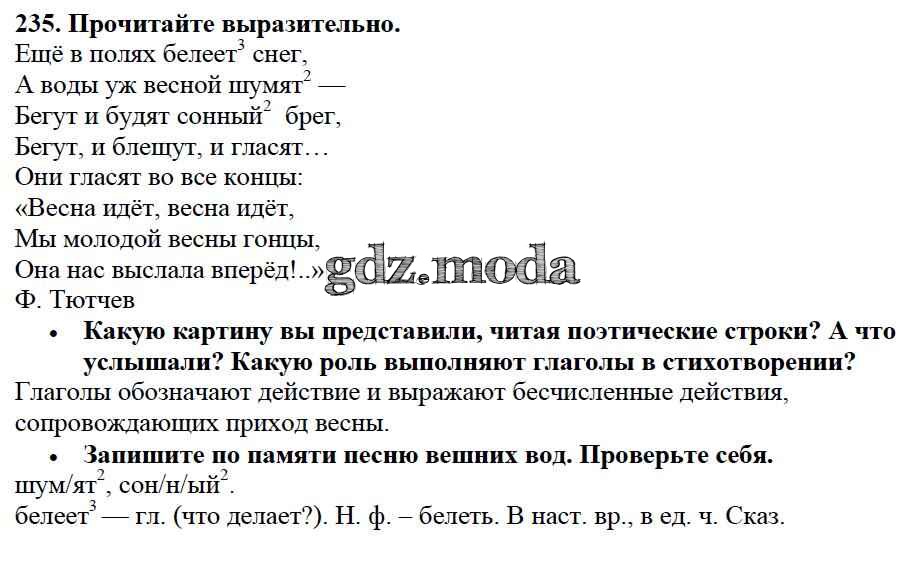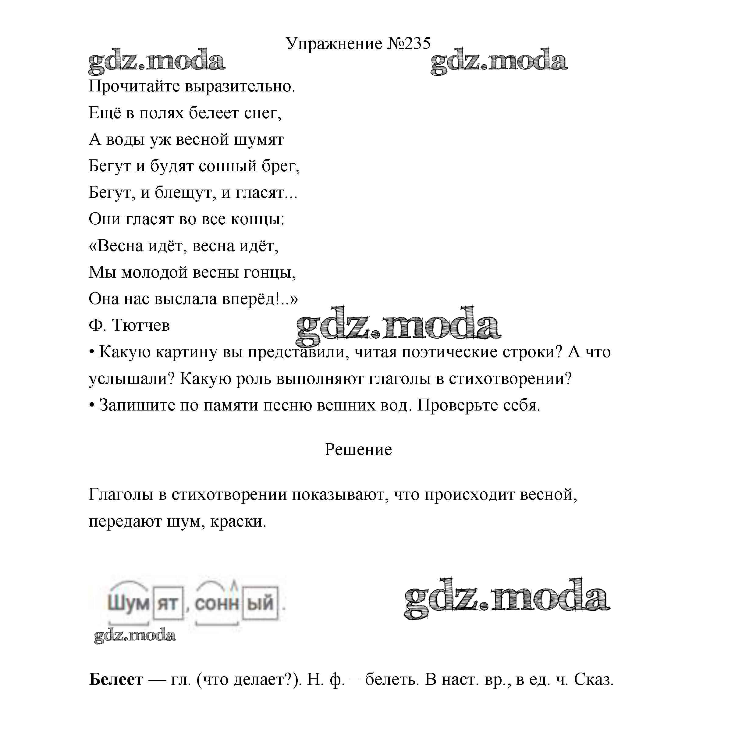 ОТВЕТ на задание № 235 Учебник по Русскому языку 3 класс Канакина Школа России
