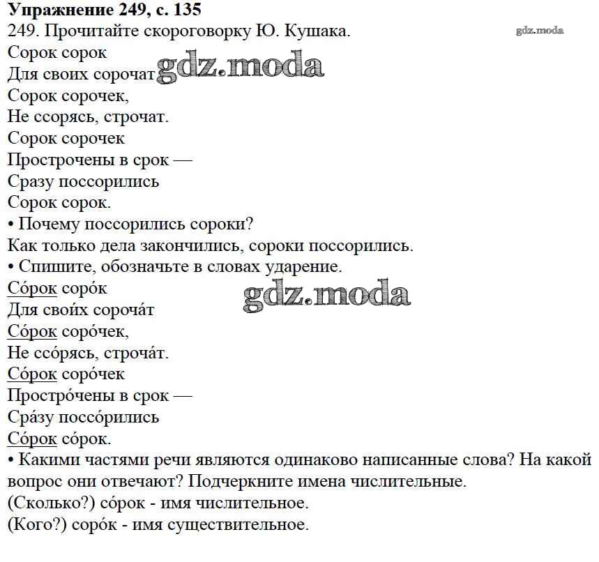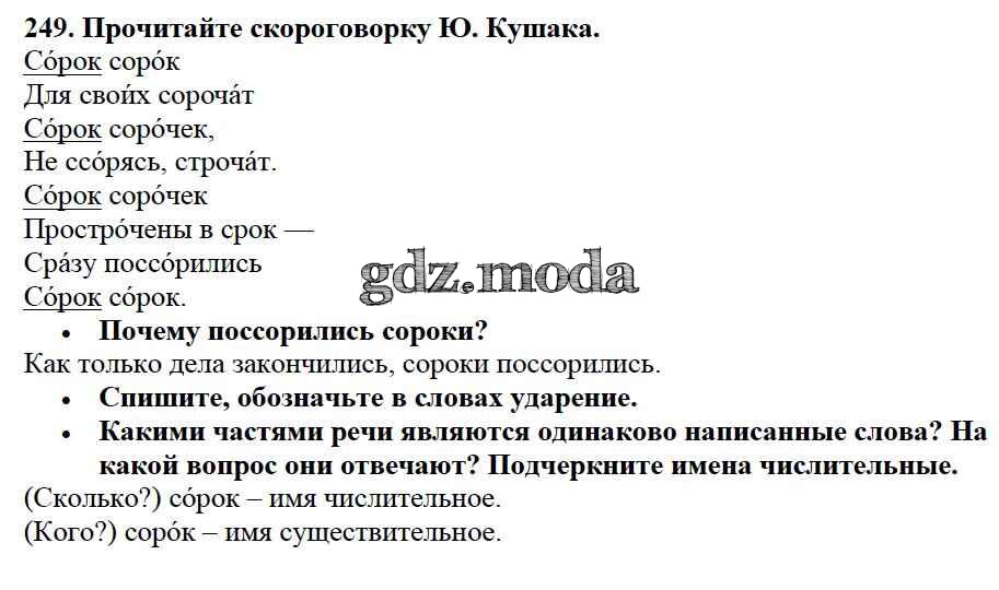 ОТВЕТ на задание № 249 Учебник по Русскому языку 3 класс Канакина Школа России