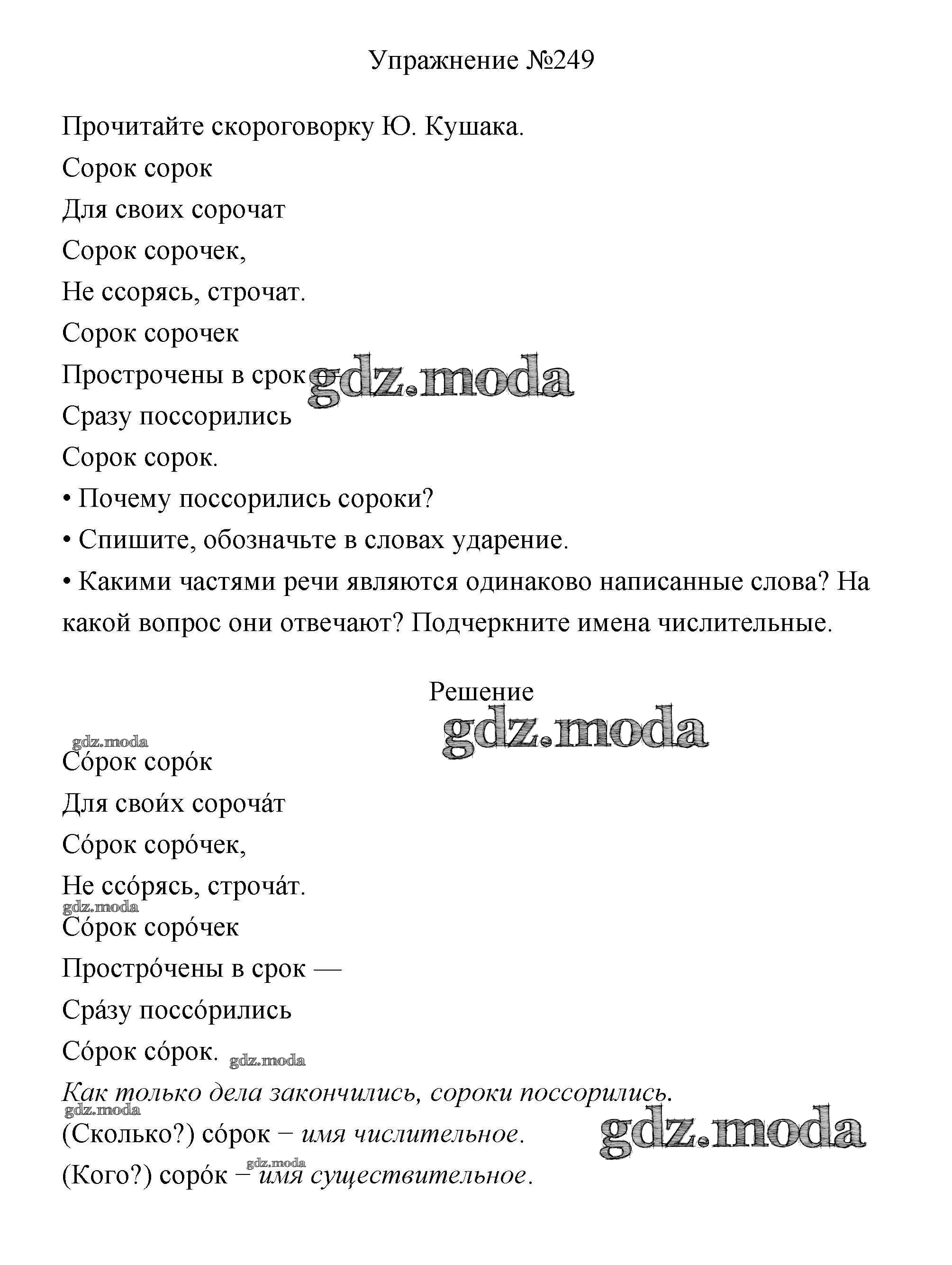 решение к части 2 / упражнение № / 249