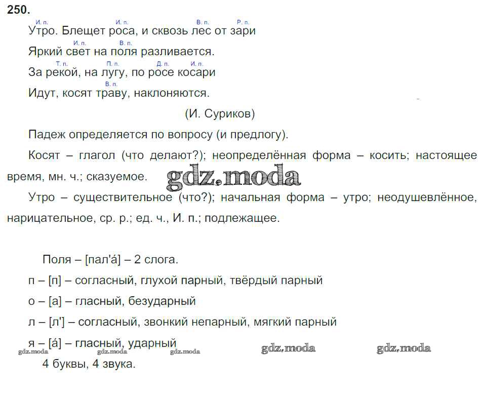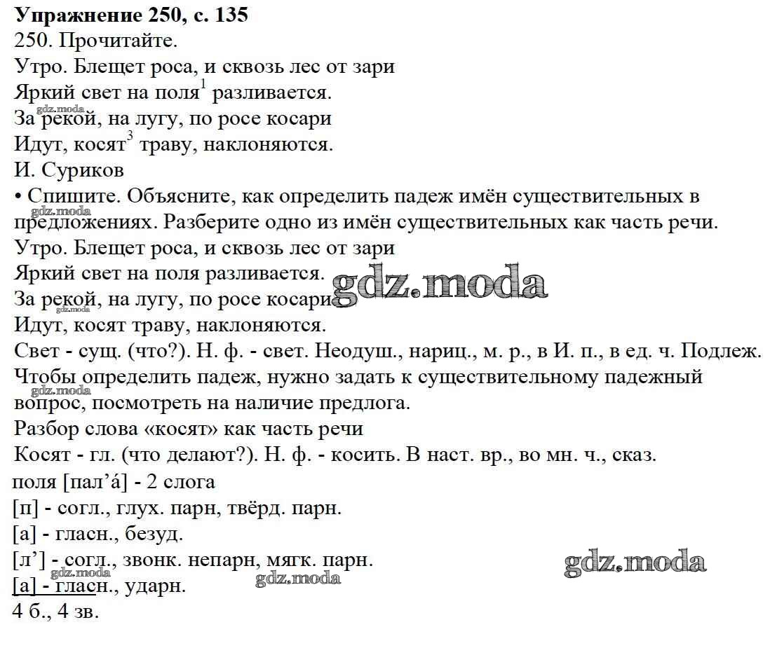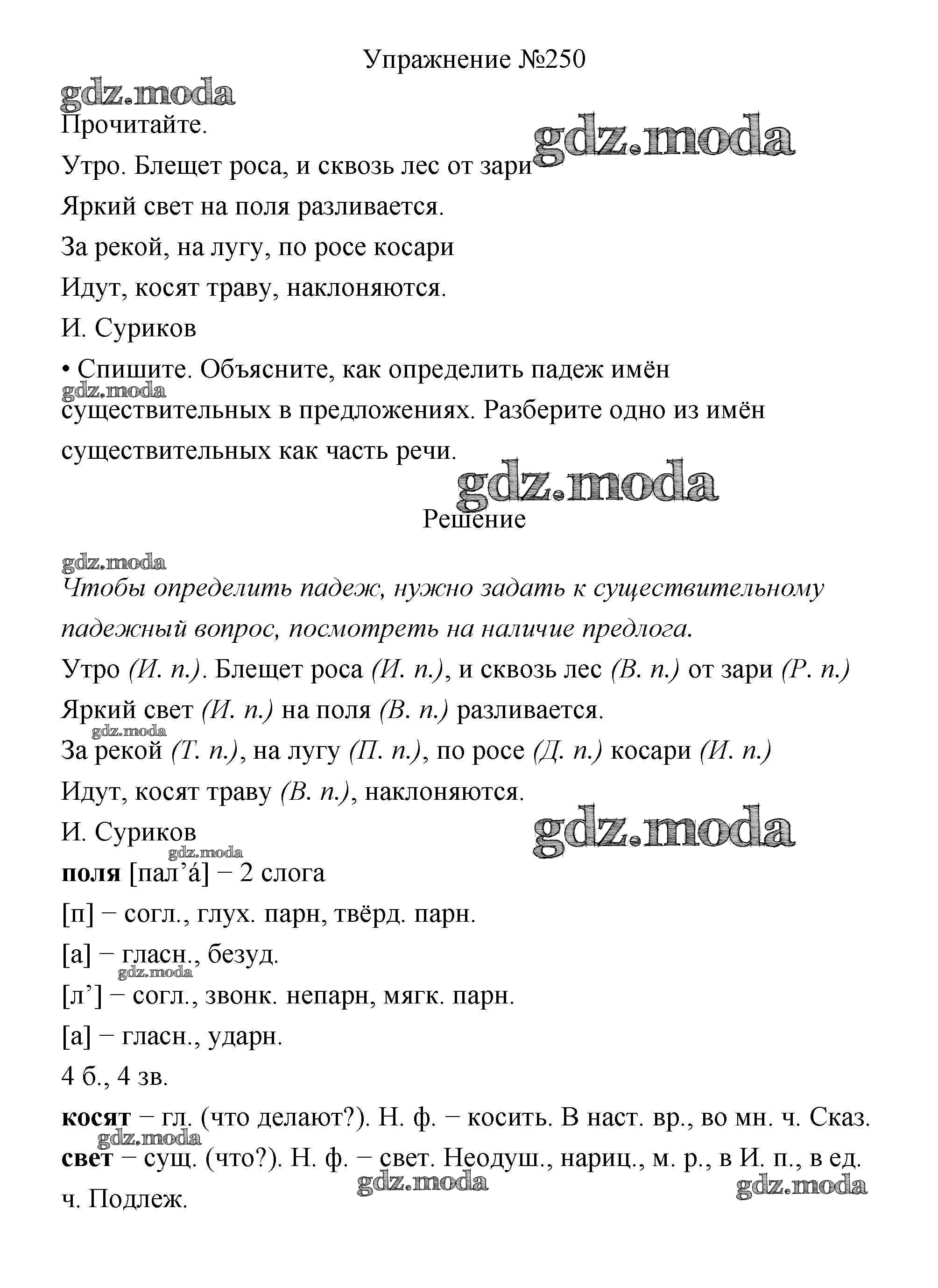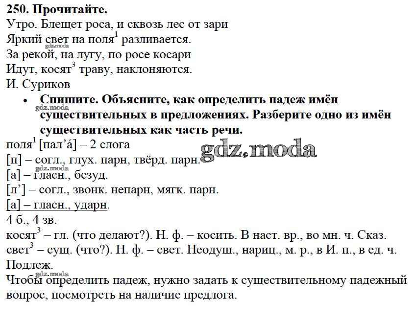 ОТВЕТ на задание № 250 Учебник по Русскому языку 3 класс Канакина Школа России