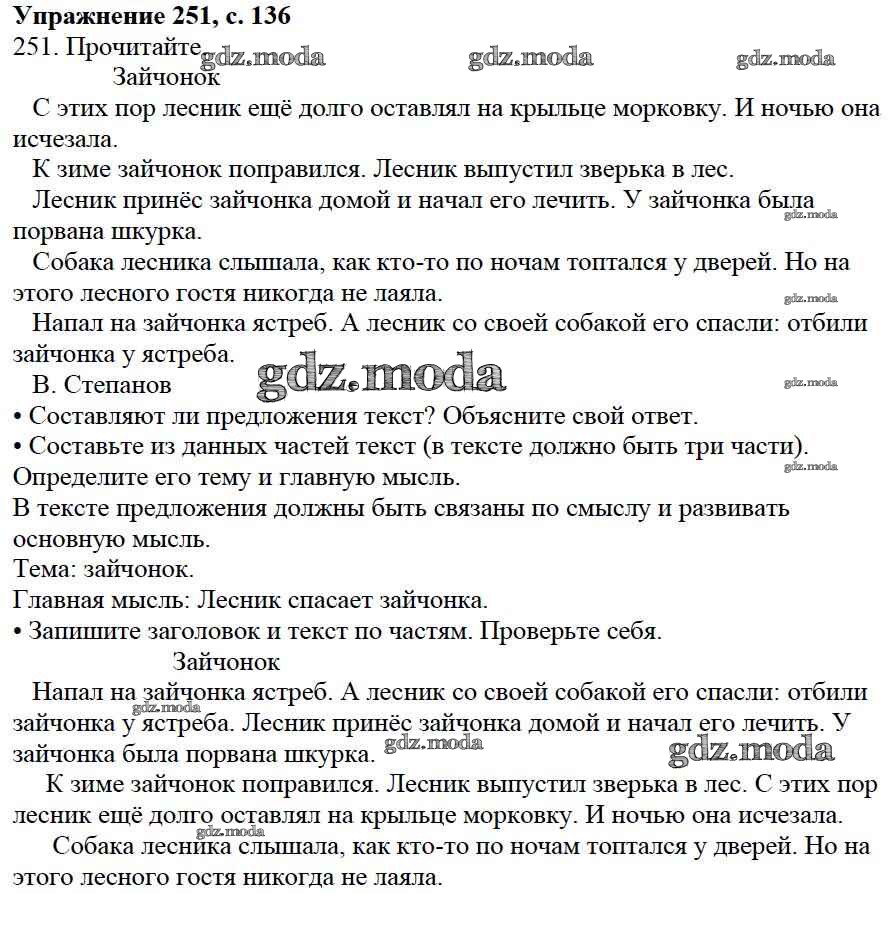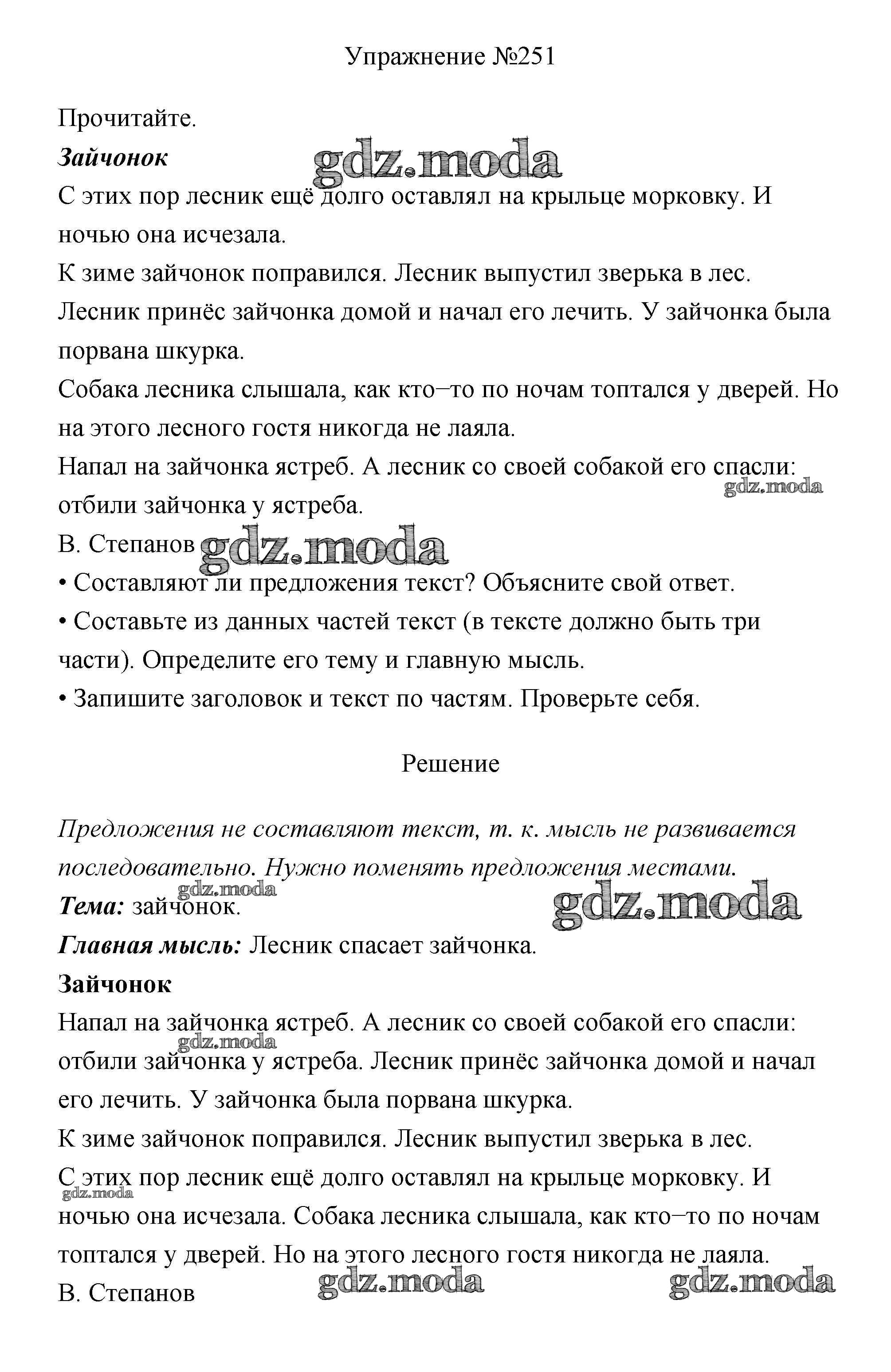 ОТВЕТ на задание № 251 Учебник по Русскому языку 3 класс Канакина Школа России