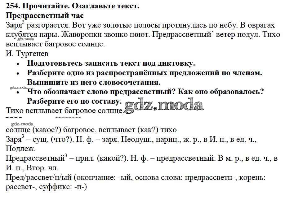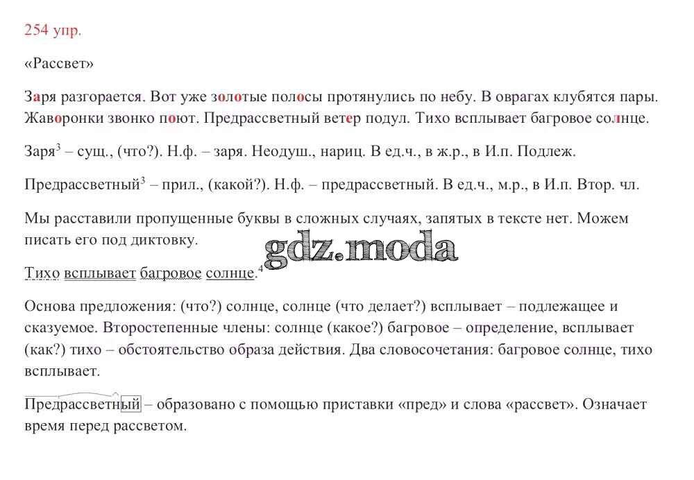 ОТВЕТ на задание № 254 Учебник по Русскому языку 3 класс Канакина Школа России