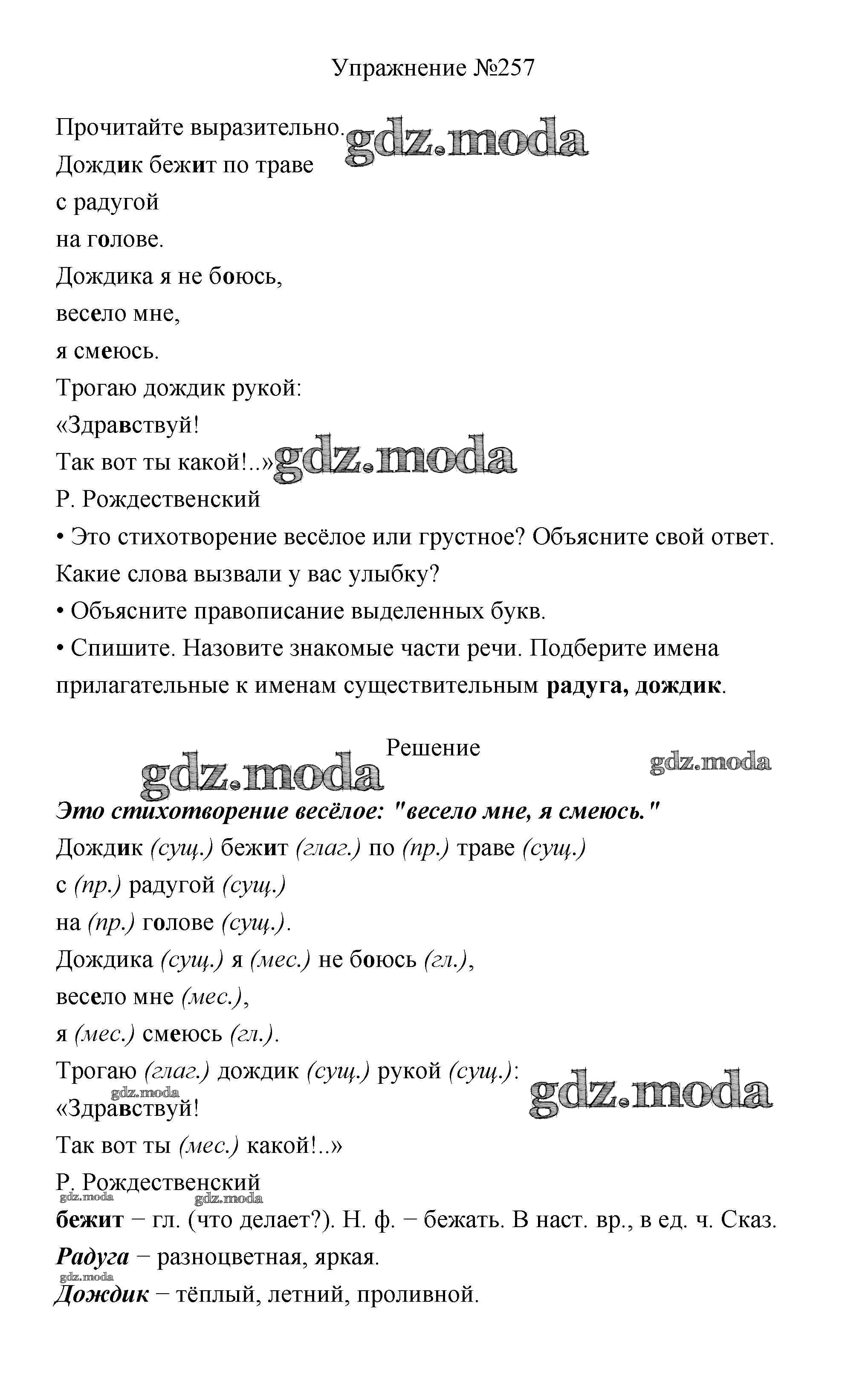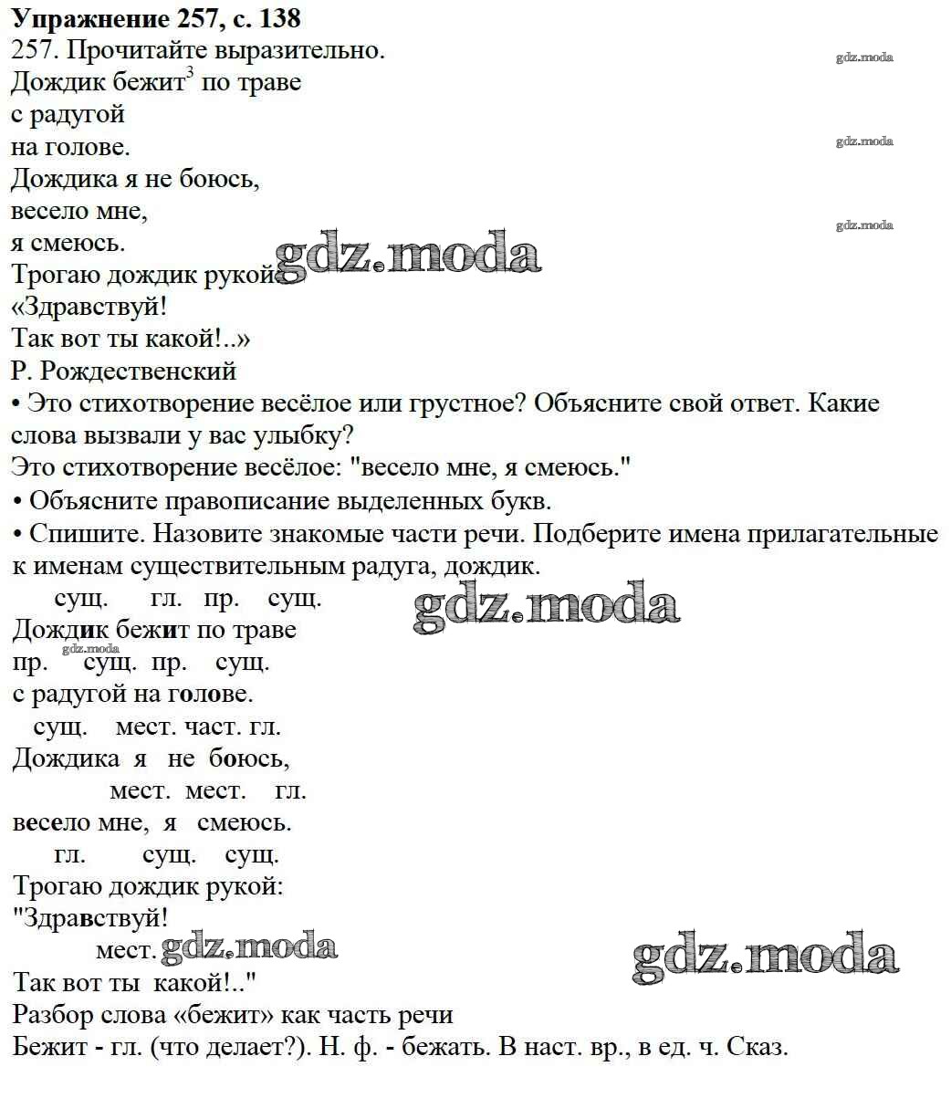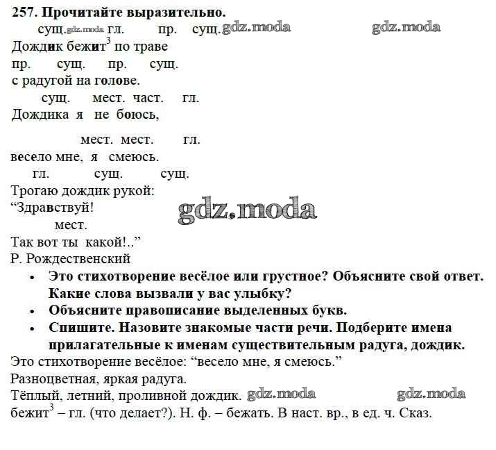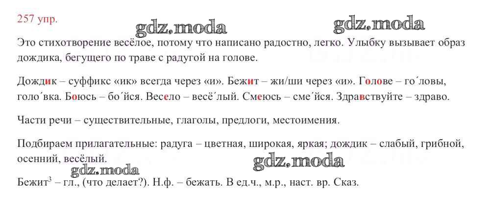 ОТВЕТ на задание № 257 Учебник по Русскому языку 3 класс Канакина Школа России