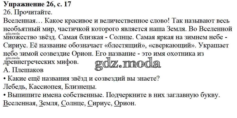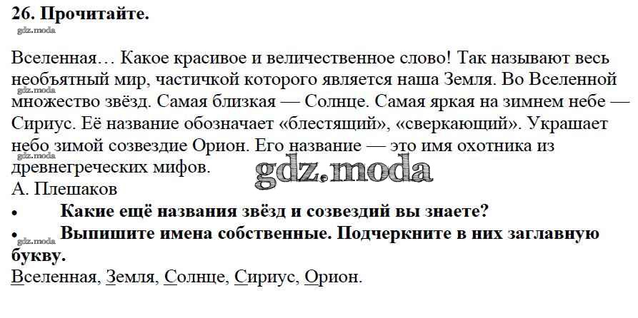 ОТВЕТ на задание № 26 Учебник по Русскому языку 3 класс Канакина Школа России