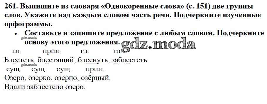 ОТВЕТ на задание № 261 Учебник по Русскому языку 3 класс Канакина Школа России