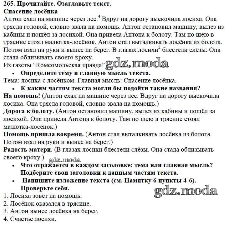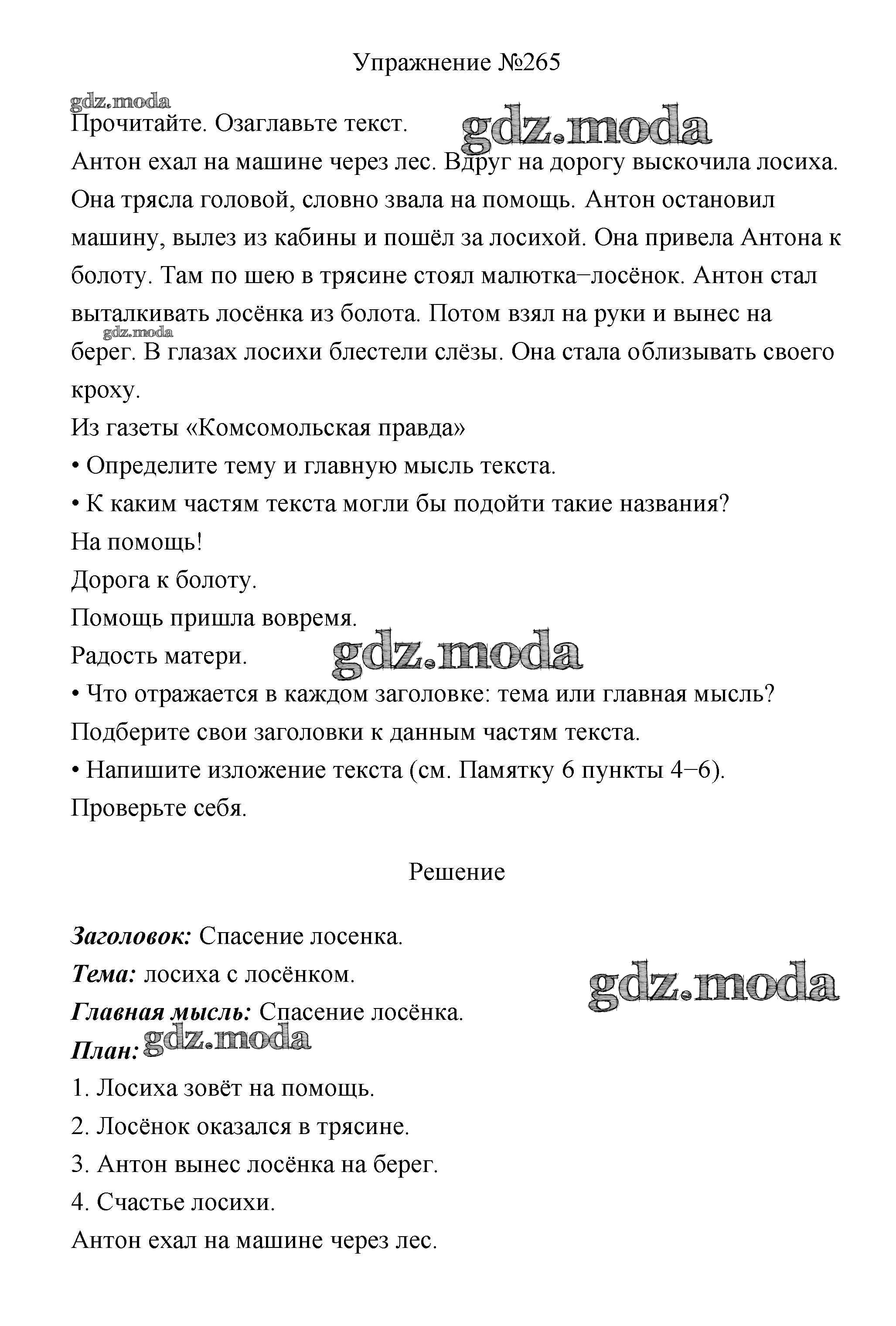 ОТВЕТ на задание № 265 Учебник по Русскому языку 3 класс Канакина Школа России