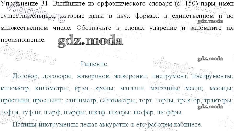 ОТВЕТ на задание № 31 Учебник по Русскому языку 3 класс Канакина Школа России