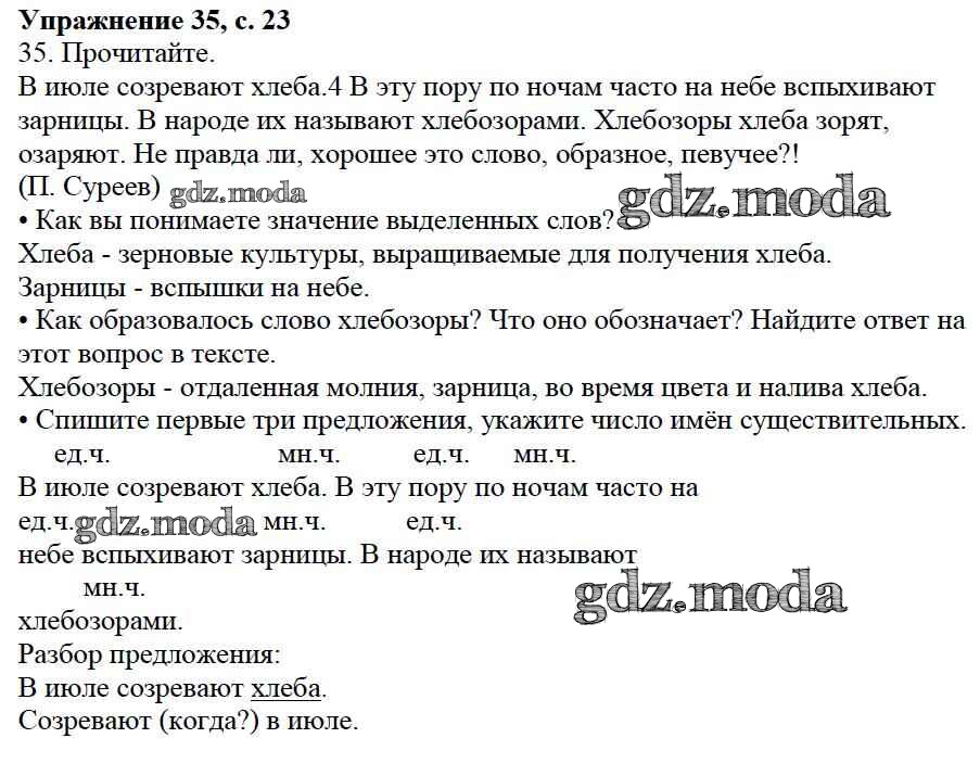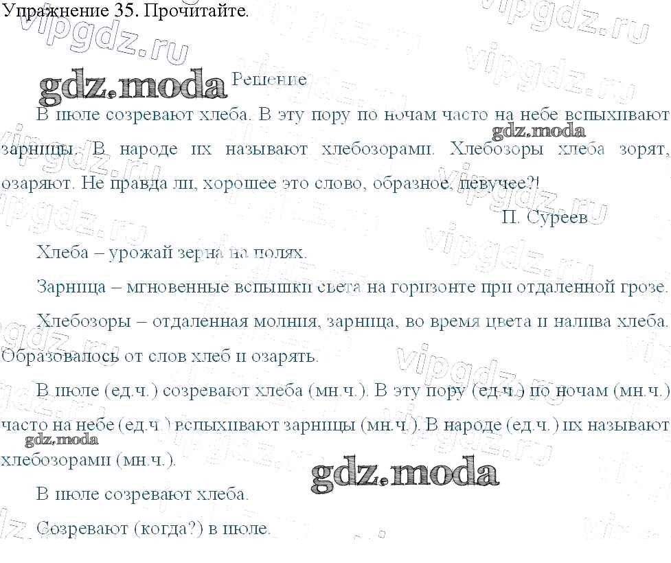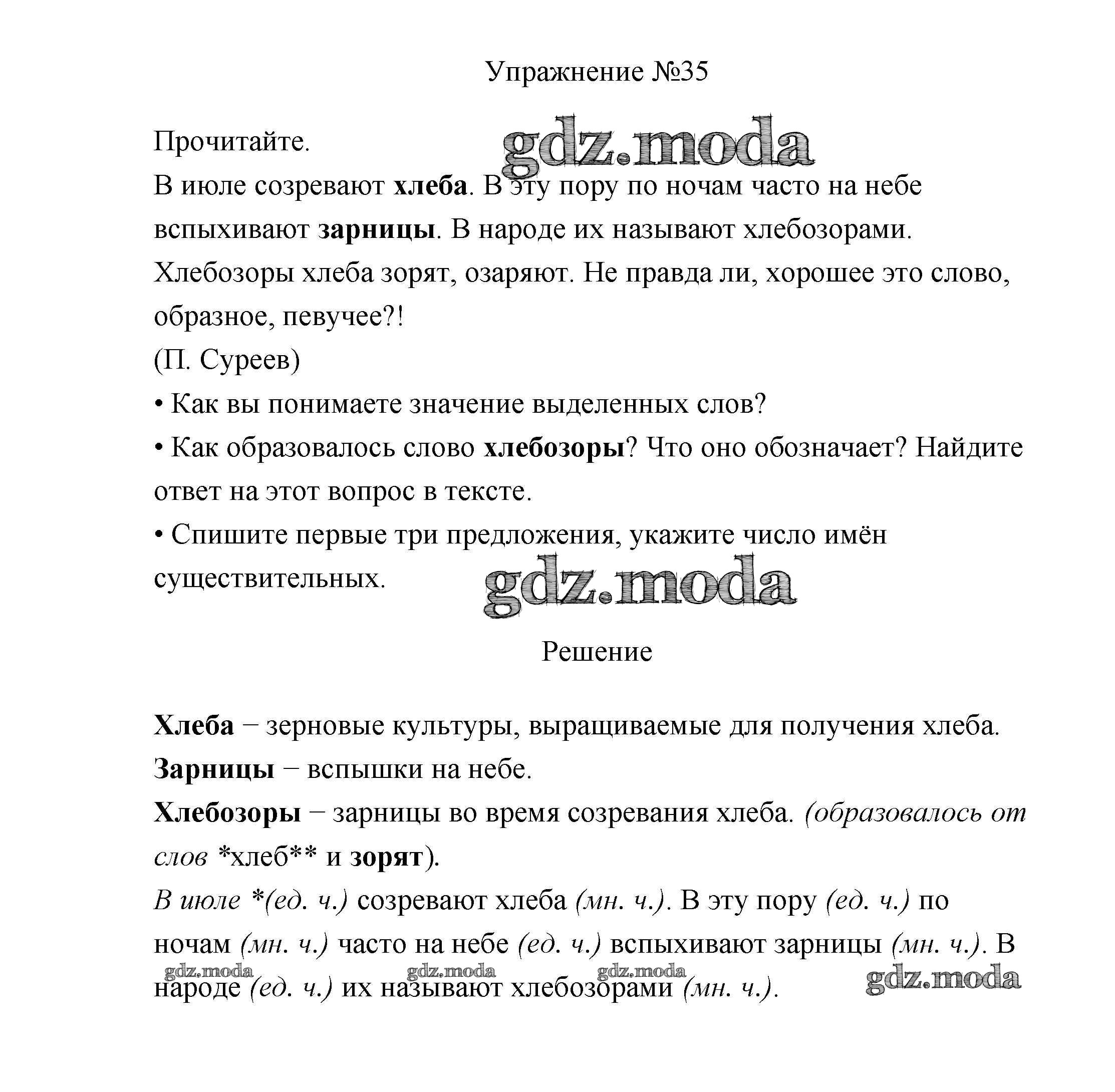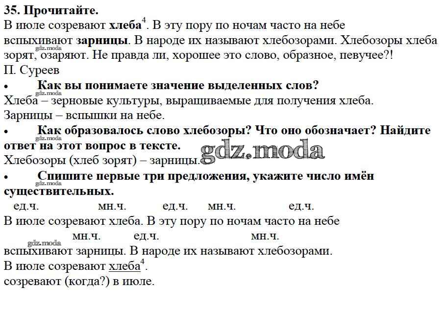 ОТВЕТ на задание № 35 Учебник по Русскому языку 3 класс Канакина Школа России