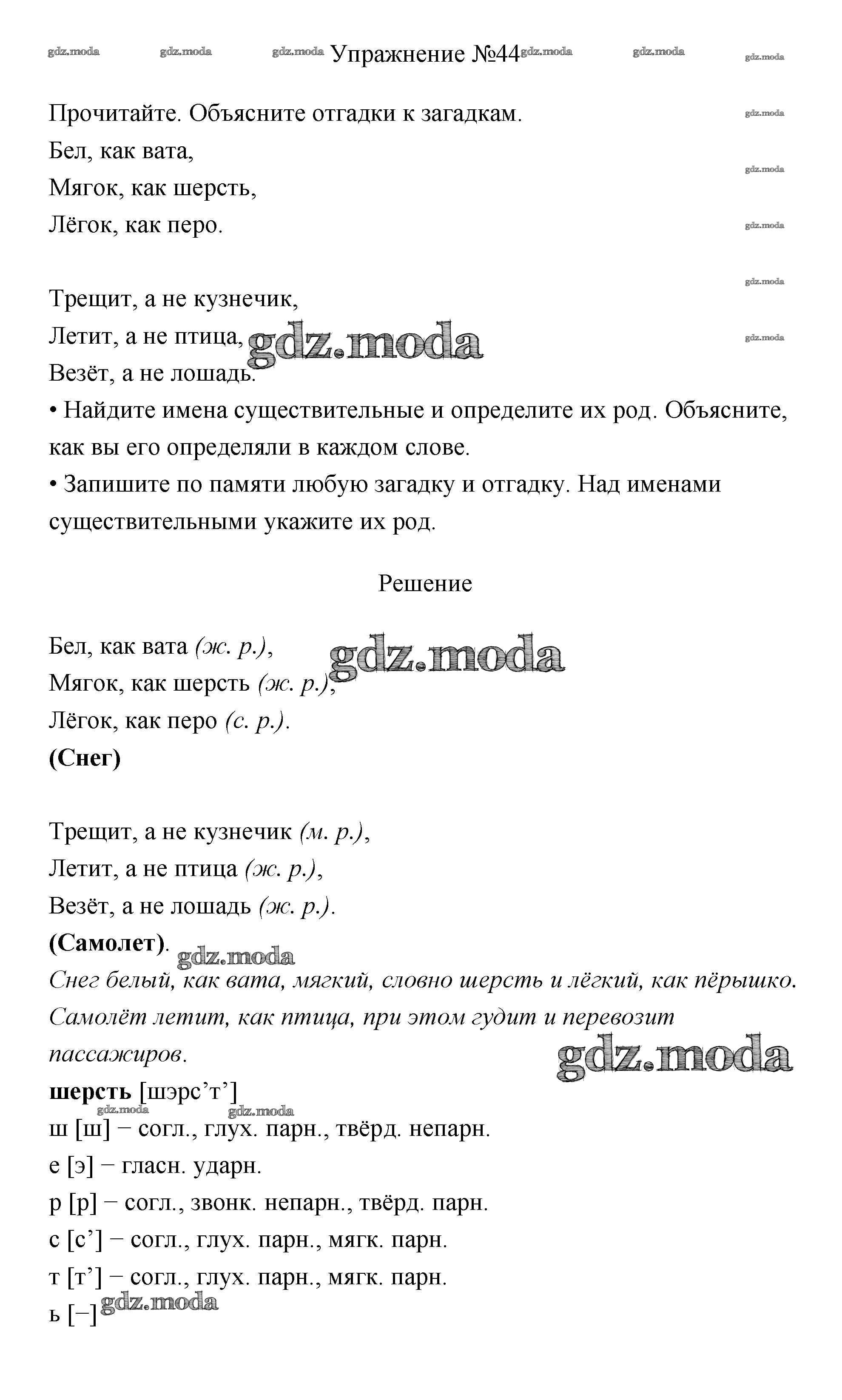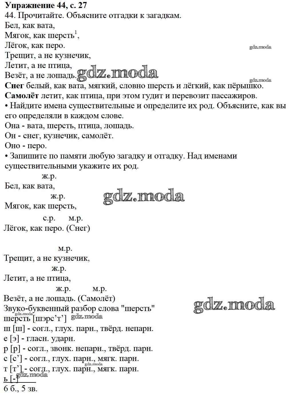 ОТВЕТ на задание № 44 Учебник по Русскому языку 3 класс Канакина Школа России