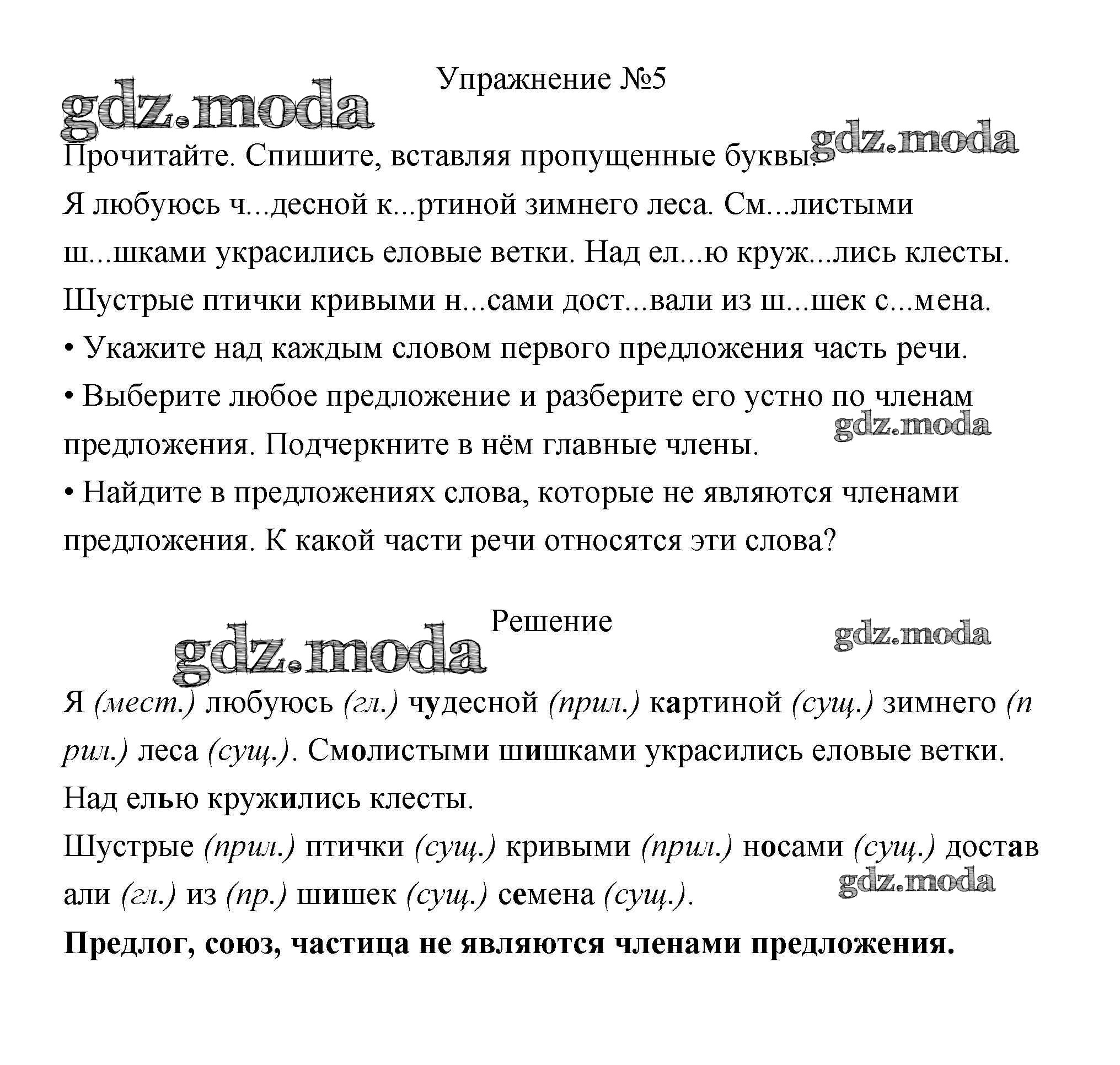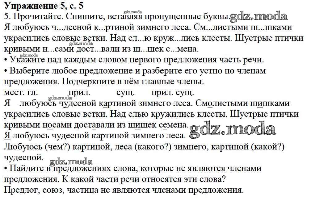 ОТВЕТ на задание № 5 Учебник по Русскому языку 3 класс Канакина Школа России