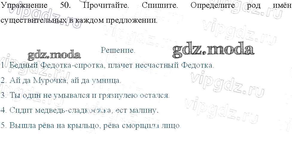 ОТВЕТ на задание № 50 Учебник по Русскому языку 3 класс Канакина Школа России