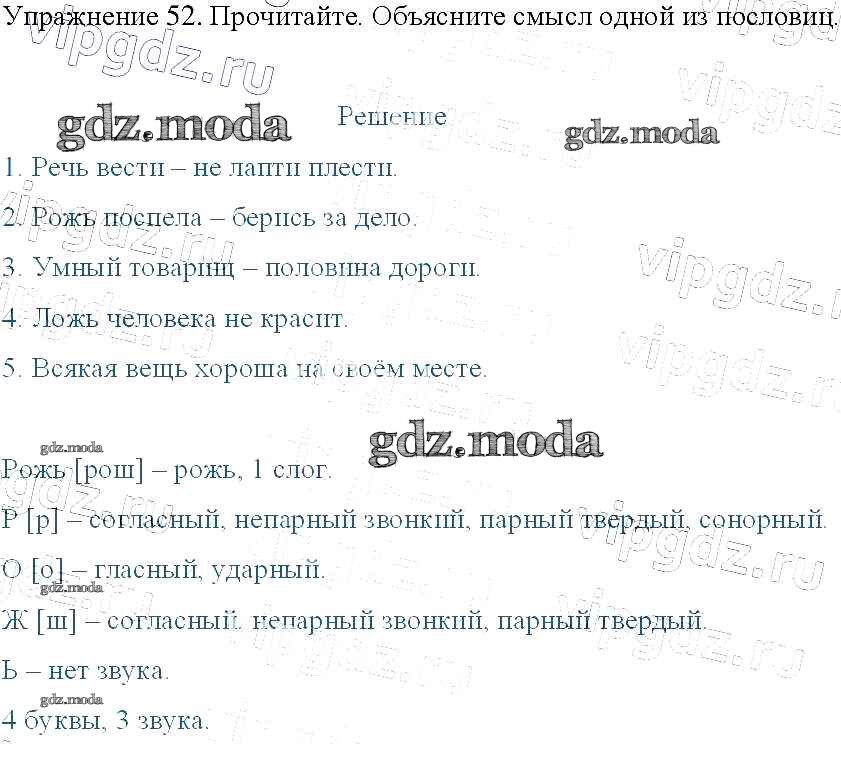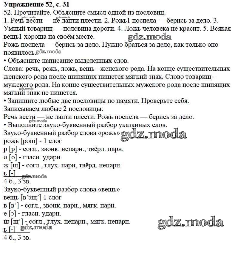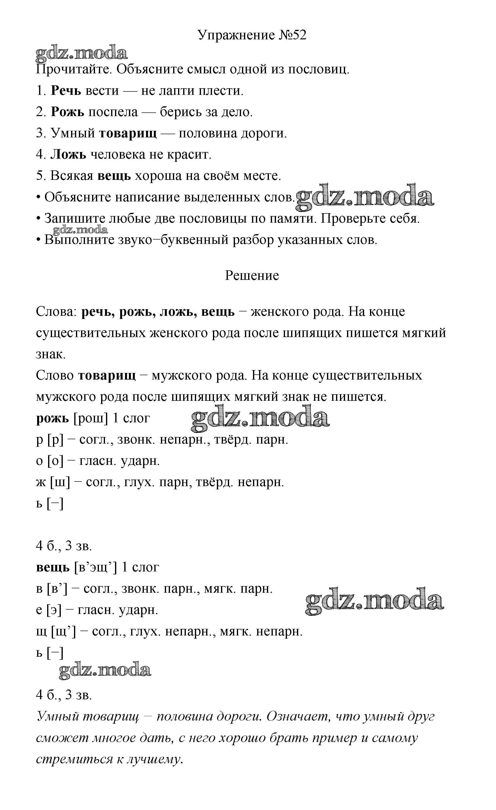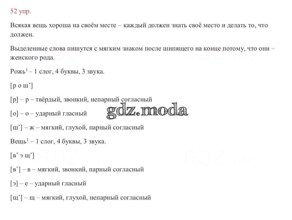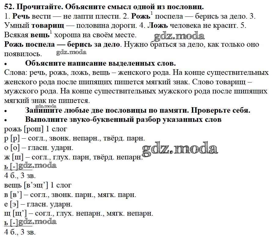 ОТВЕТ на задание № 52 Учебник по Русскому языку 3 класс Канакина Школа России