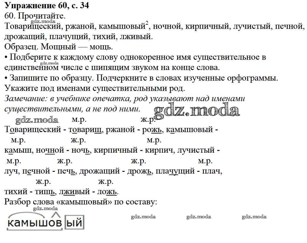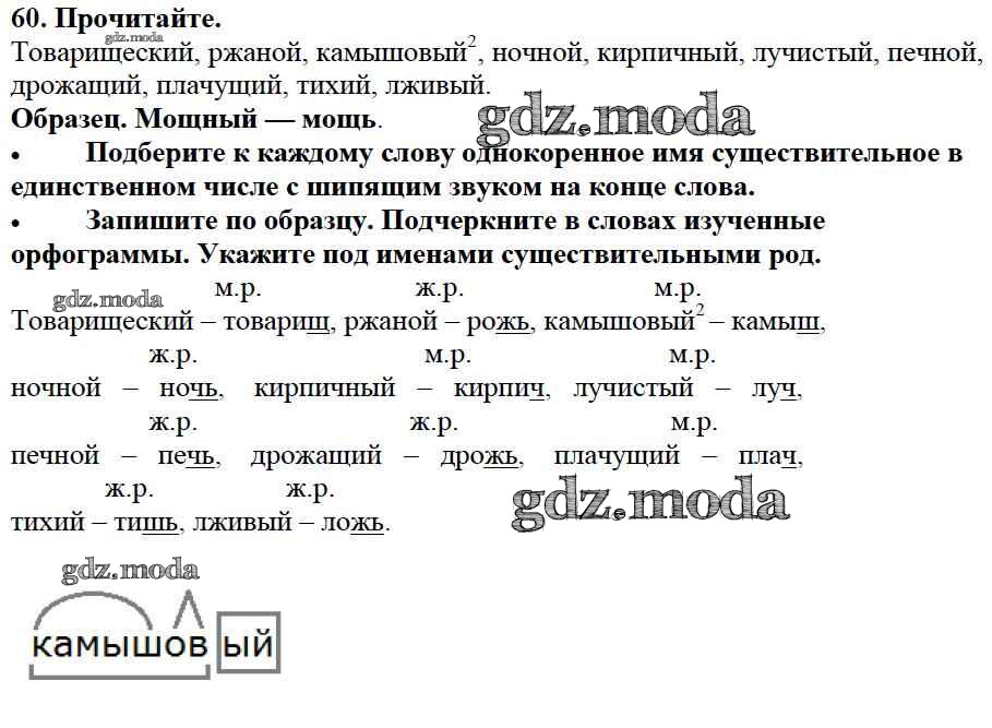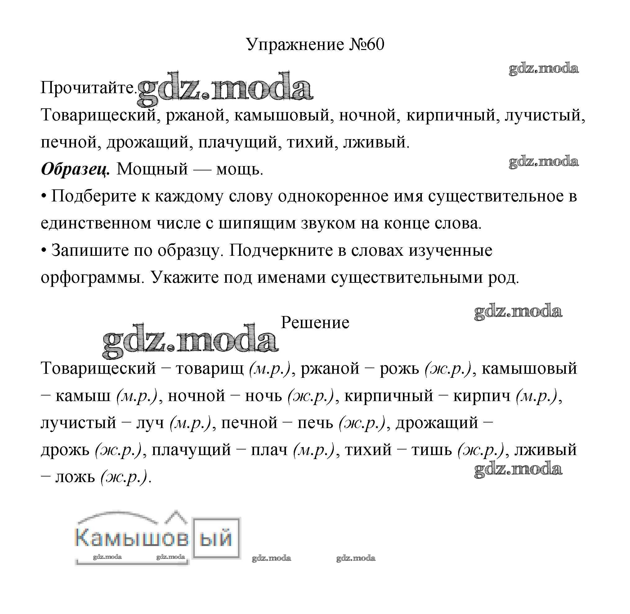 ОТВЕТ на задание № 60 Учебник по Русскому языку 3 класс Канакина Школа России