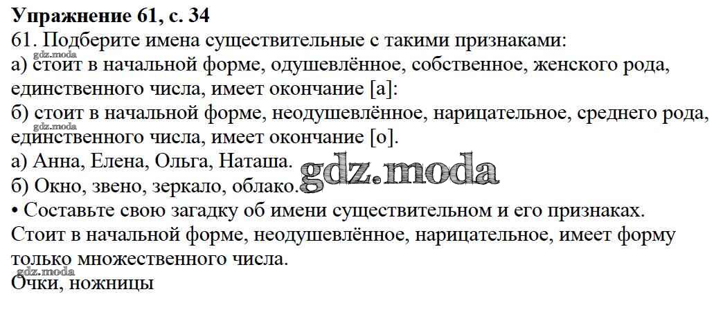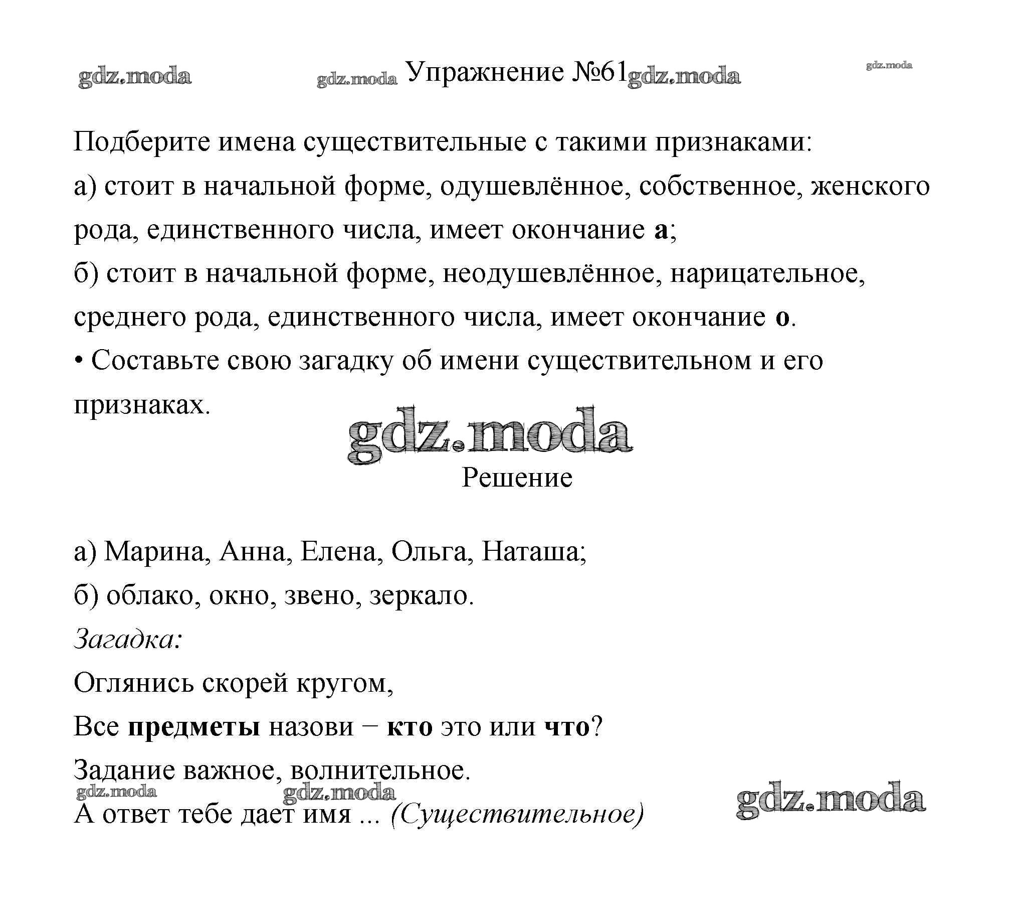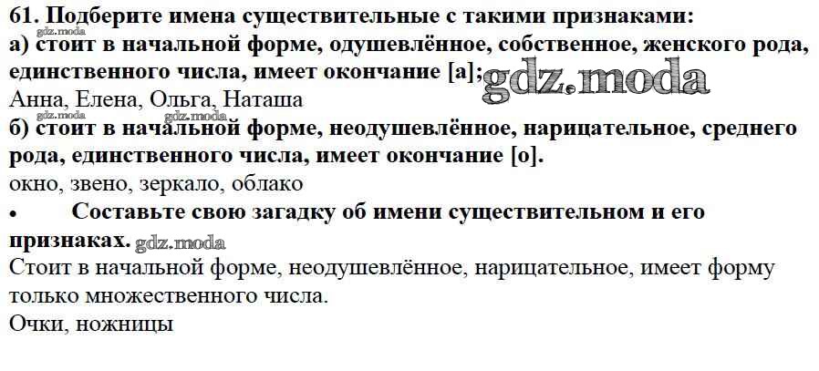 ОТВЕТ на задание № 61 Учебник по Русскому языку 3 класс Канакина Школа России