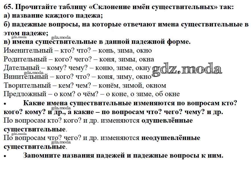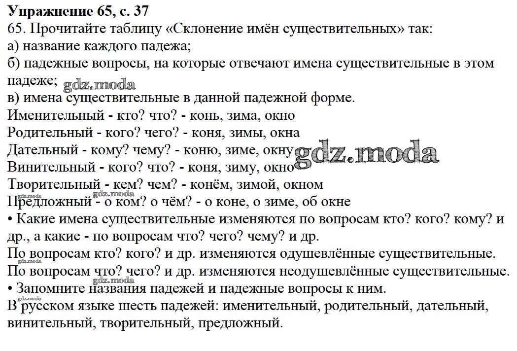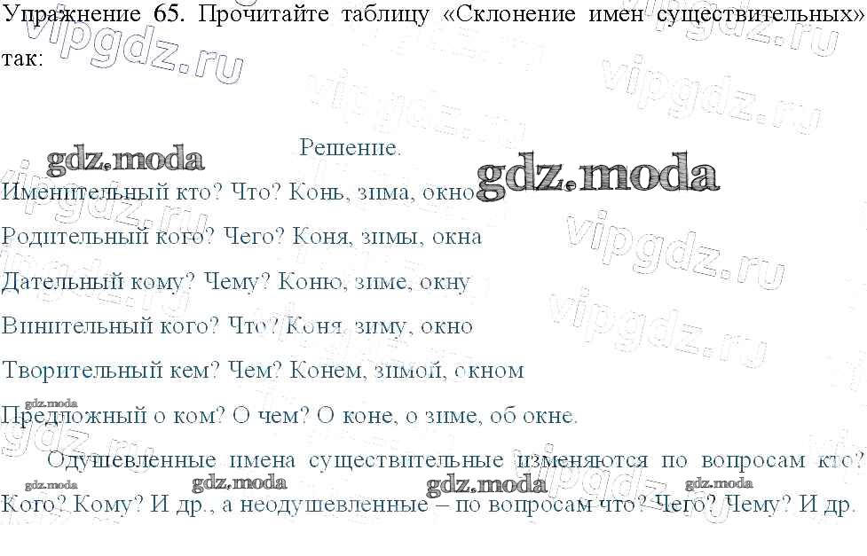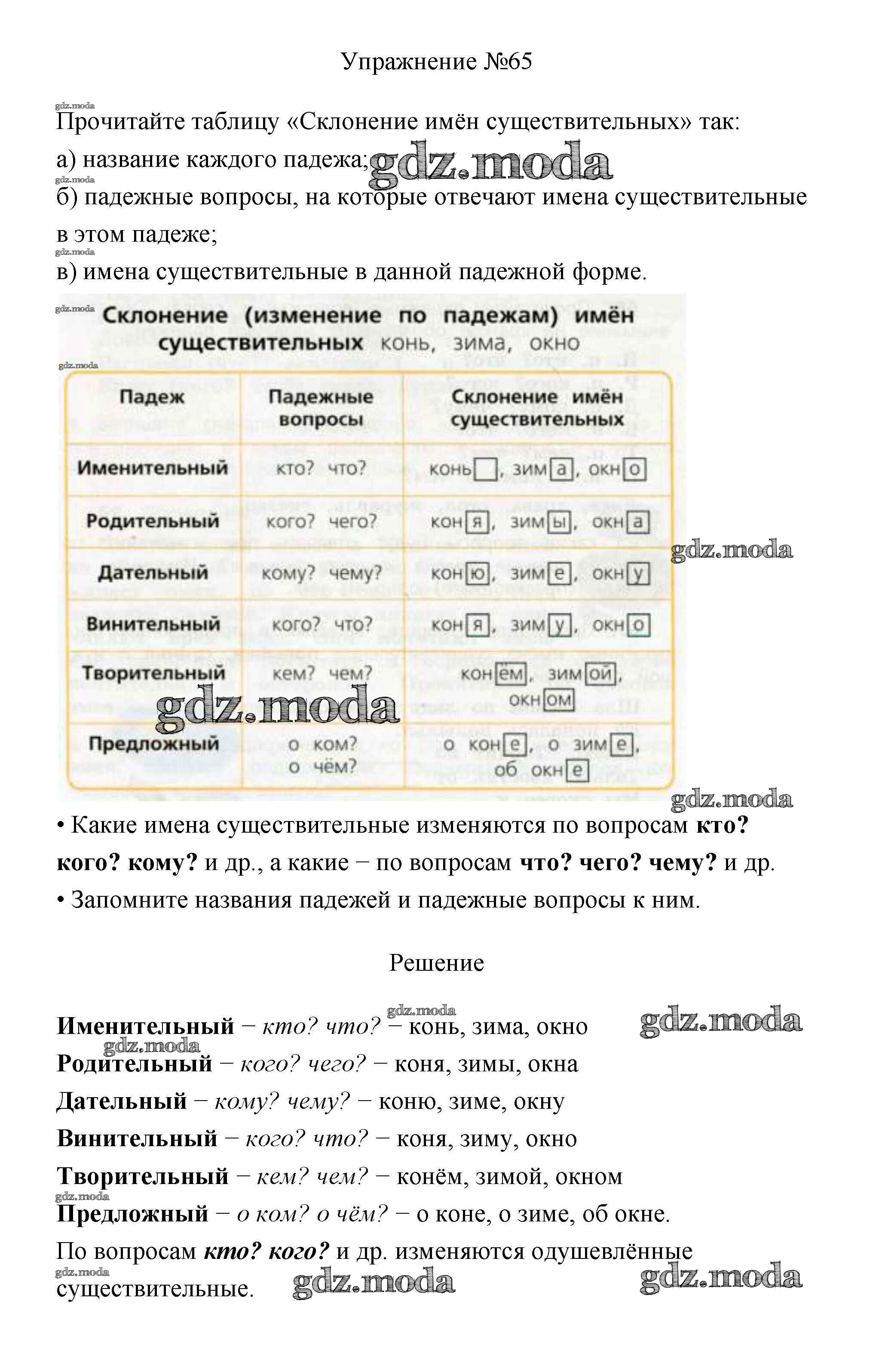 ОТВЕТ на задание № 65 Учебник по Русскому языку 3 класс Канакина Школа России
