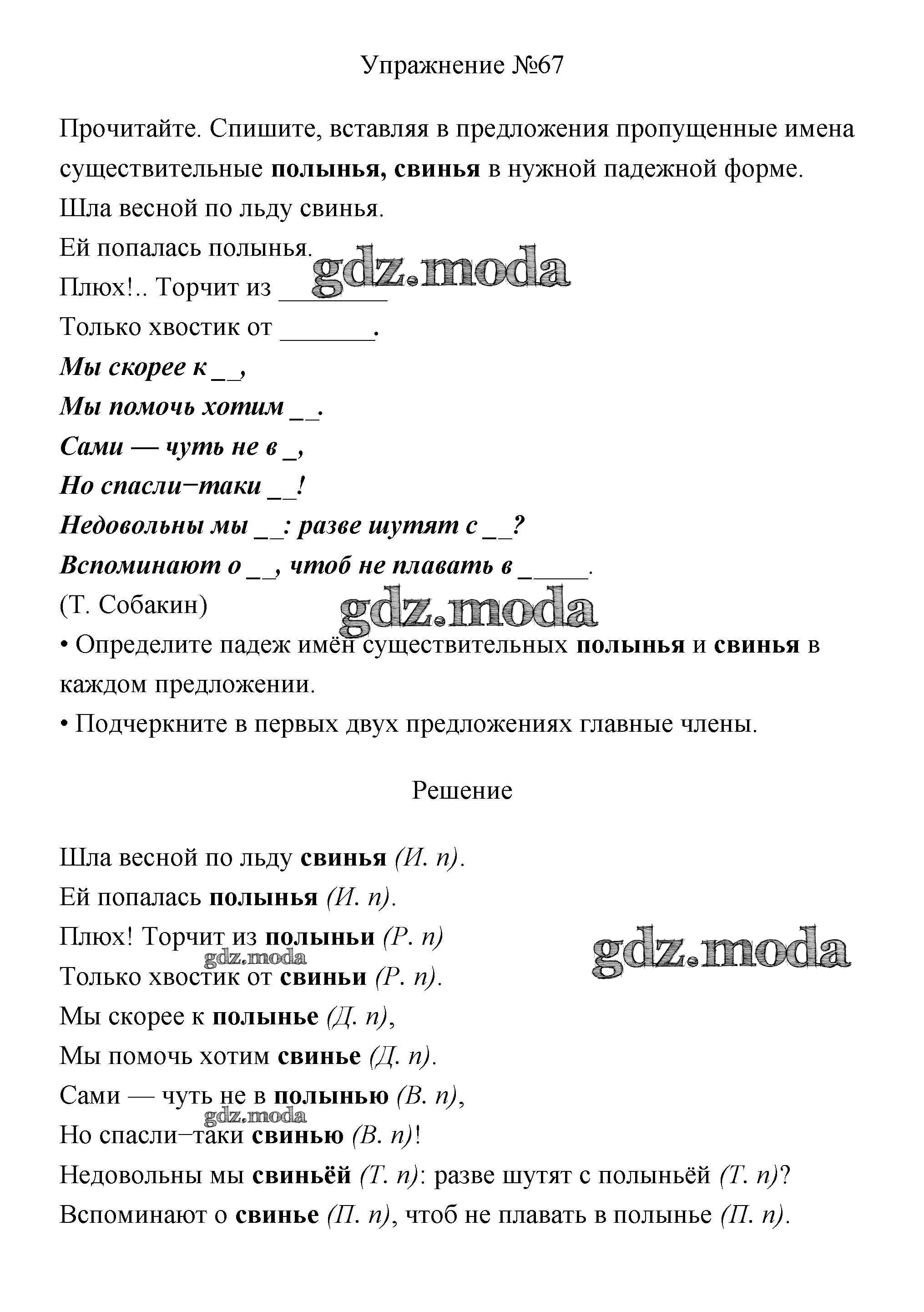 ОТВЕТ на задание № 67 Учебник по Русскому языку 3 класс Канакина Школа России