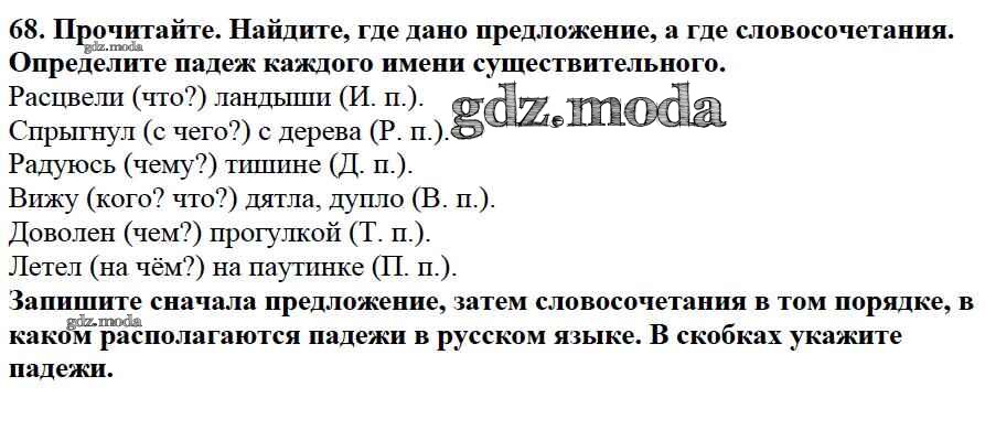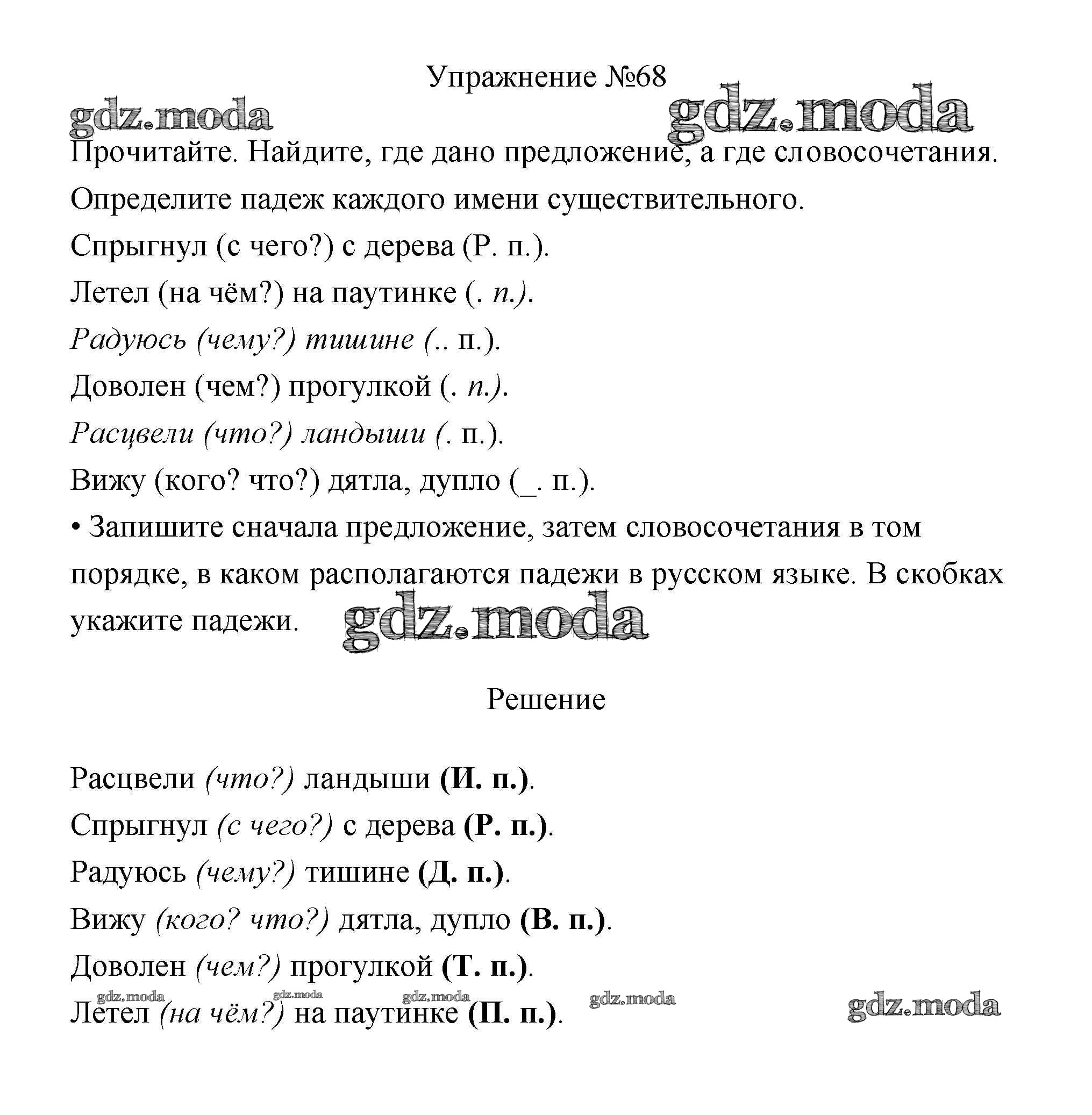 ОТВЕТ на задание № 68 Учебник по Русскому языку 3 класс Канакина Школа России