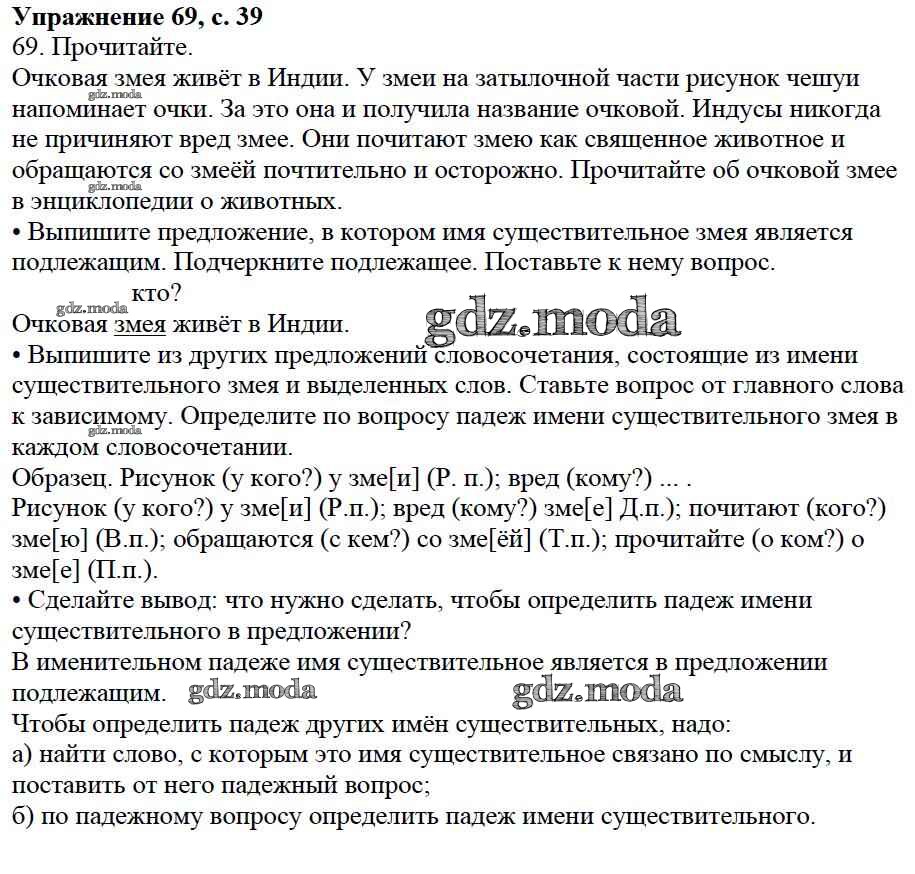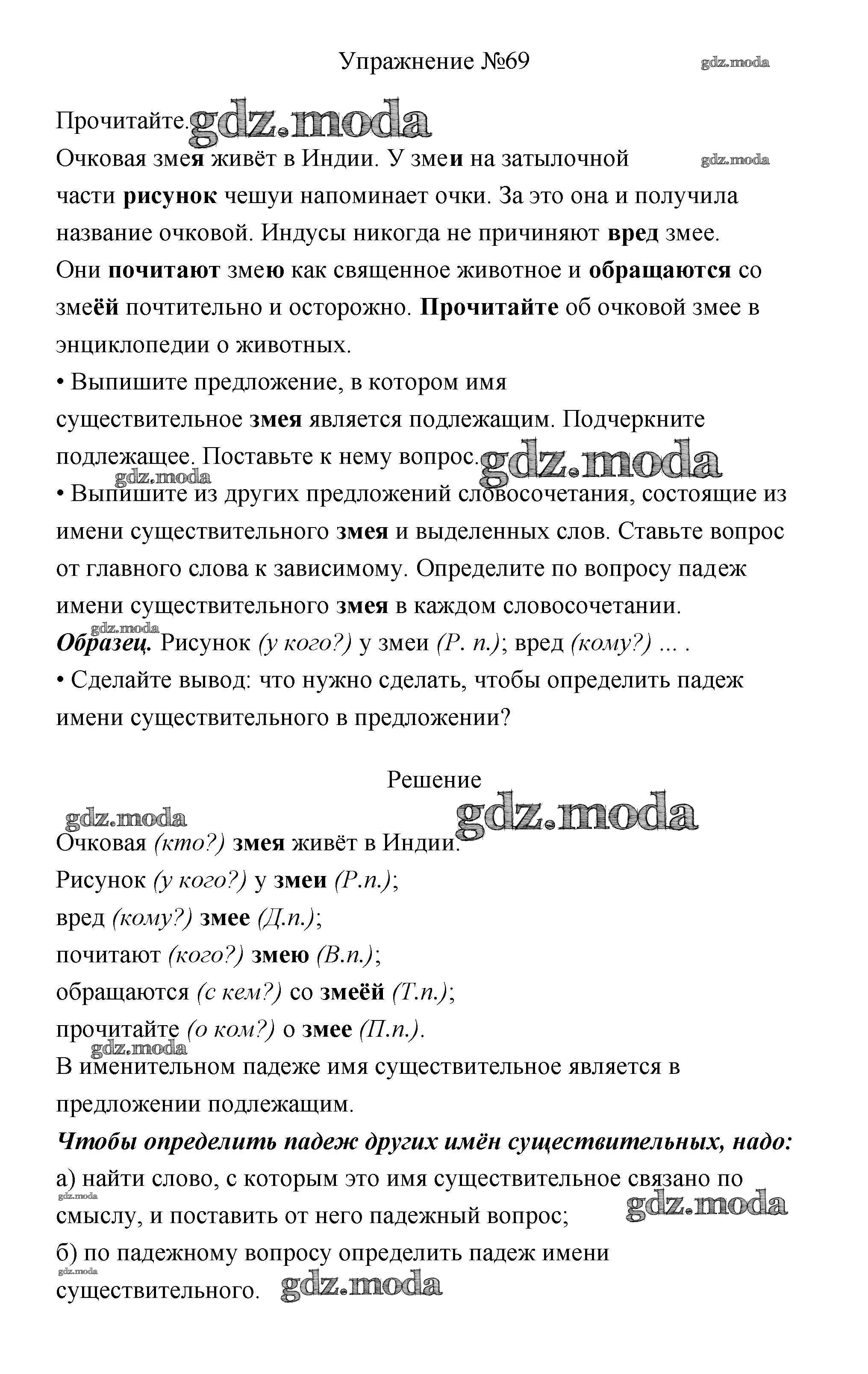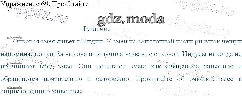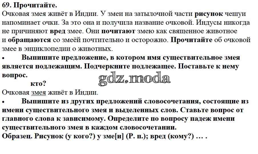 ОТВЕТ на задание № 69 Учебник по Русскому языку 3 класс Канакина Школа России