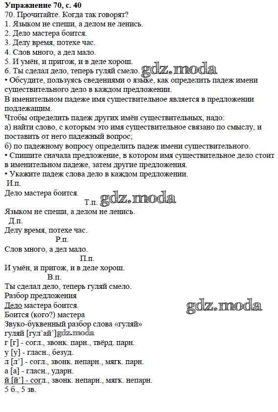 ОТВЕТ на задание № 70 Учебник по Русскому языку 3 класс Канакина Школа России