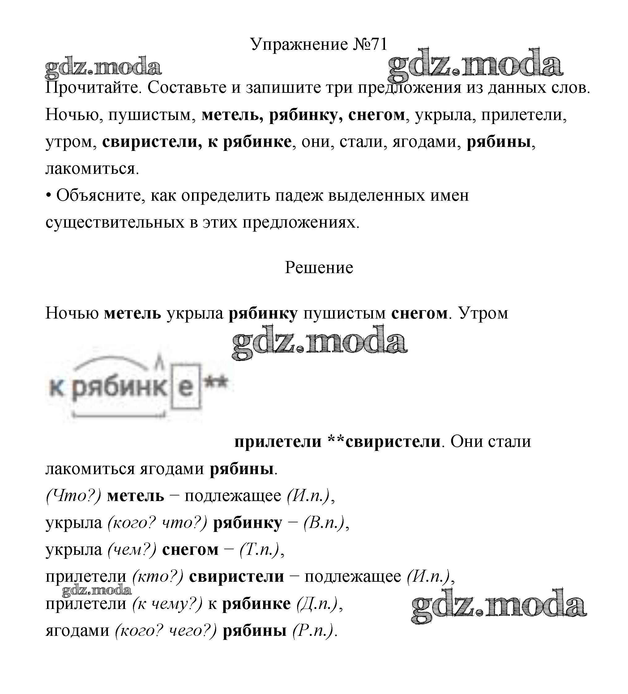 ОТВЕТ на задание № 71 Учебник по Русскому языку 3 класс Канакина Школа России