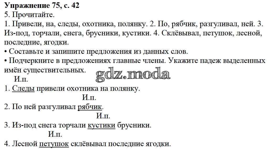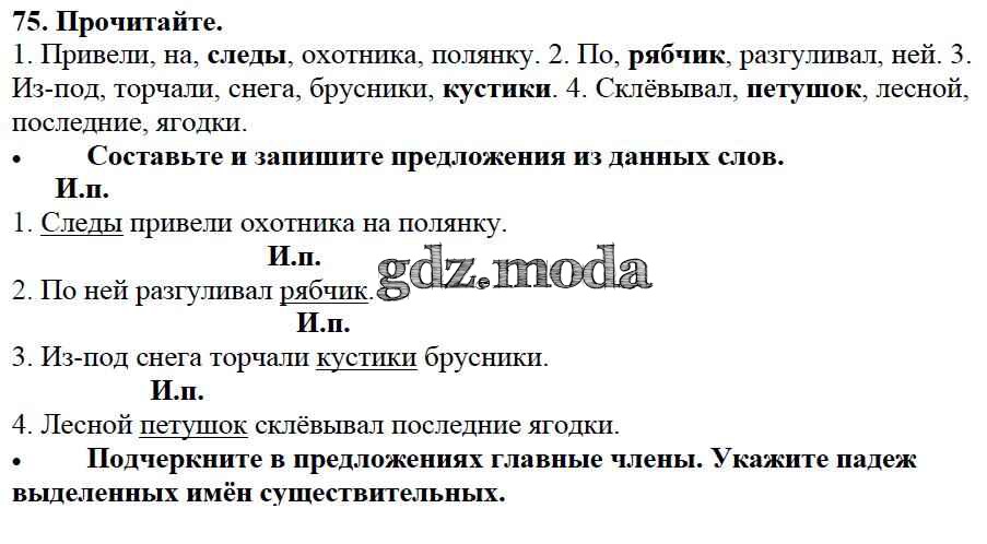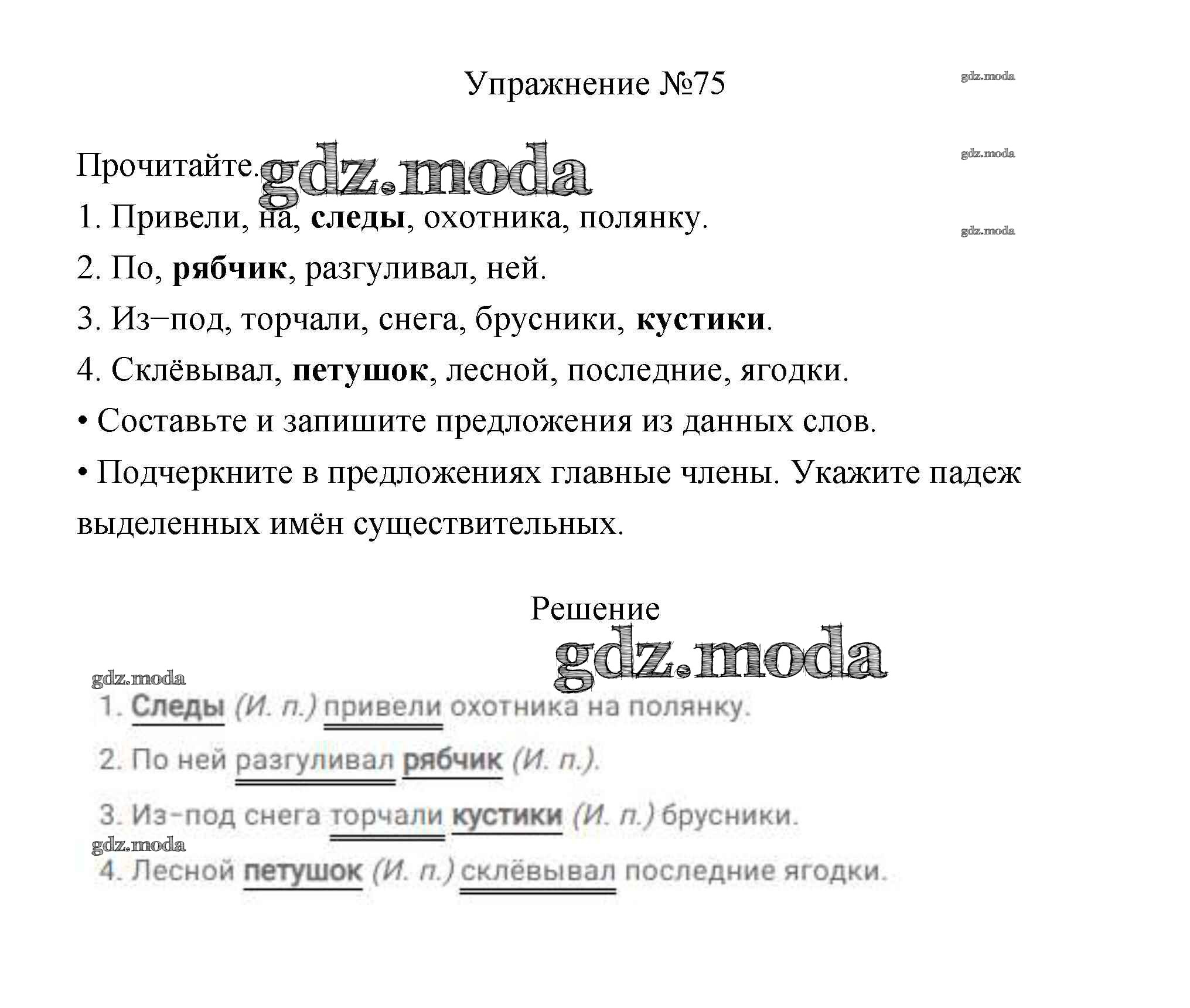 ОТВЕТ на задание № 75 Учебник по Русскому языку 3 класс Канакина Школа России