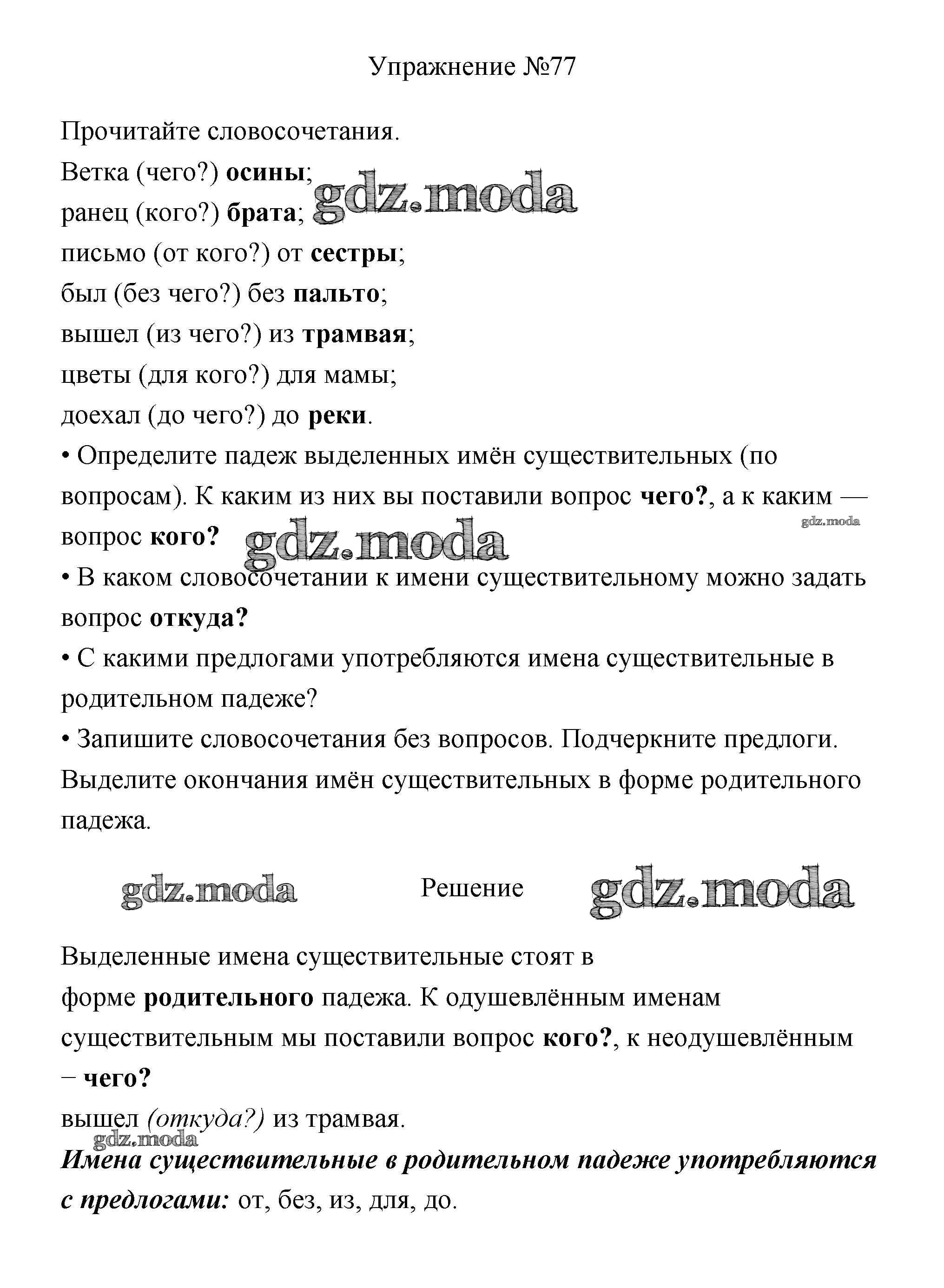 ОТВЕТ на задание № 77 Учебник по Русскому языку 3 класс Канакина Школа России
