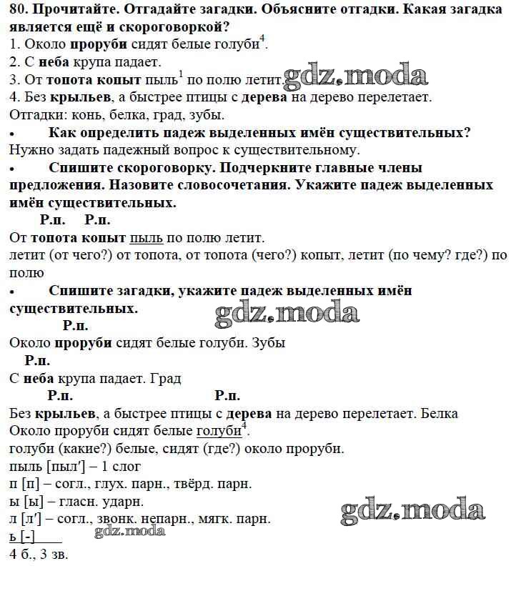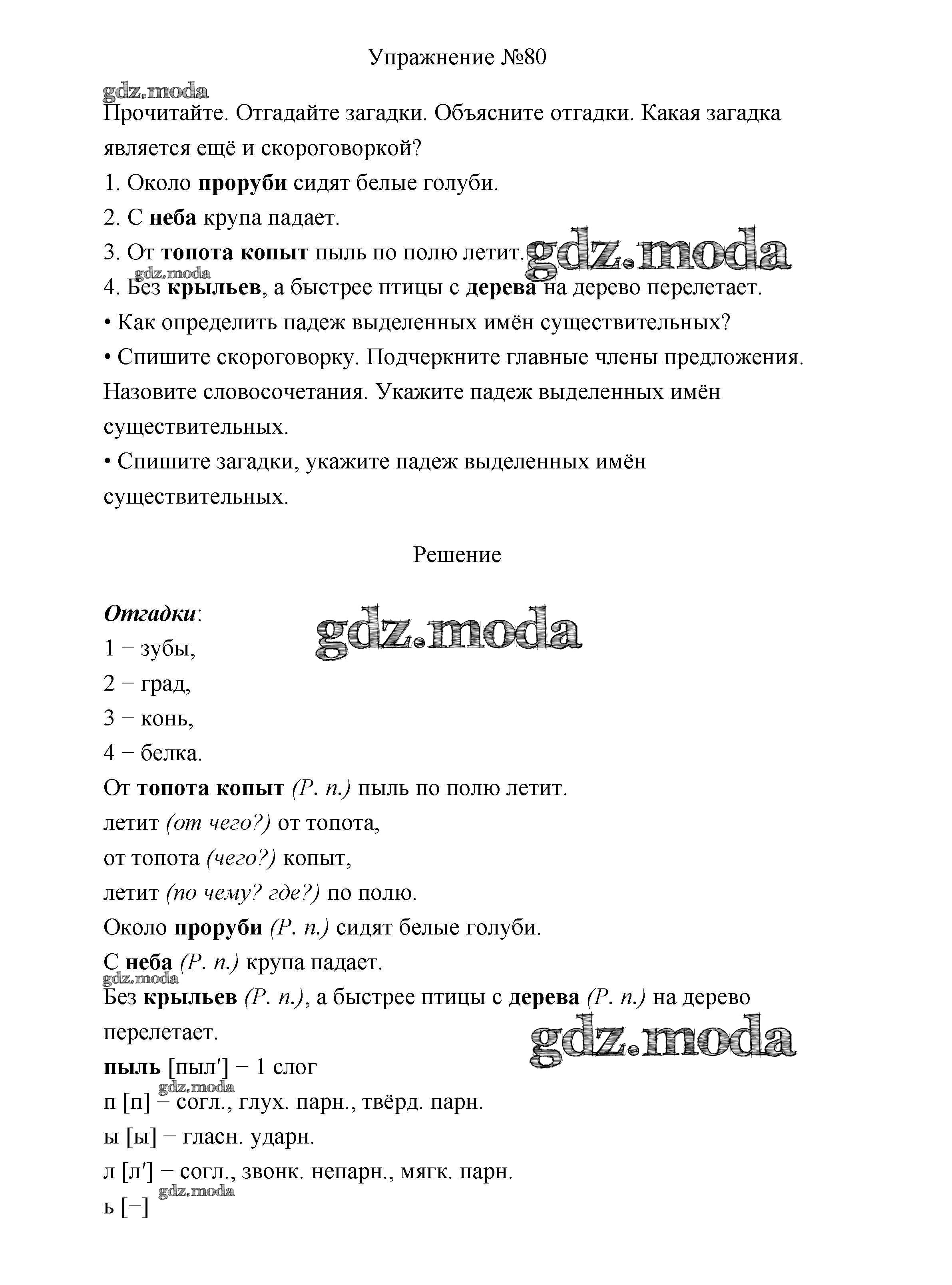 ОТВЕТ на задание № 80 Учебник по Русскому языку 3 класс Канакина Школа России