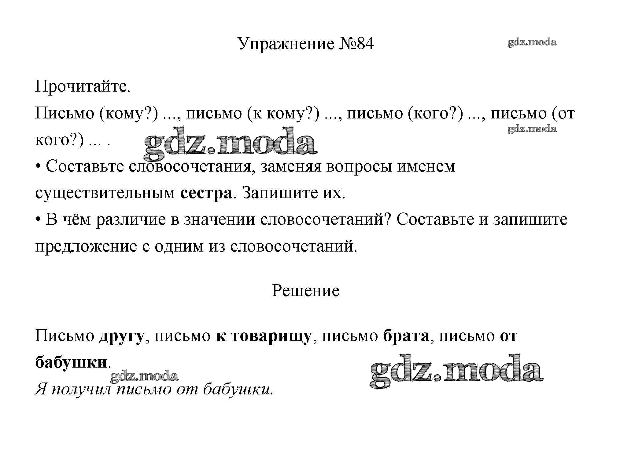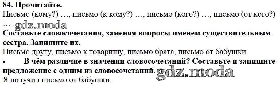 ОТВЕТ на задание № 84 Учебник по Русскому языку 3 класс Канакина Школа России