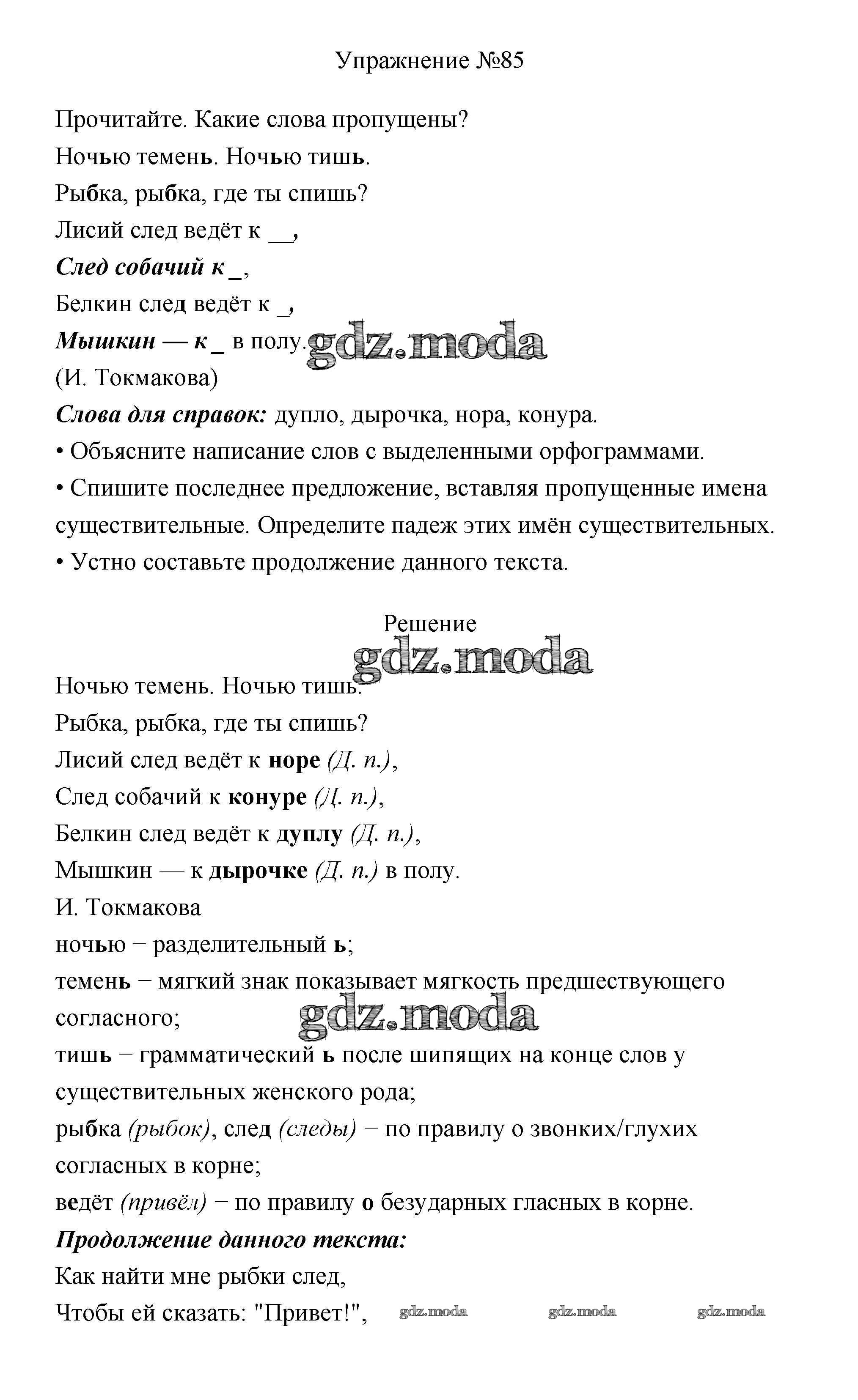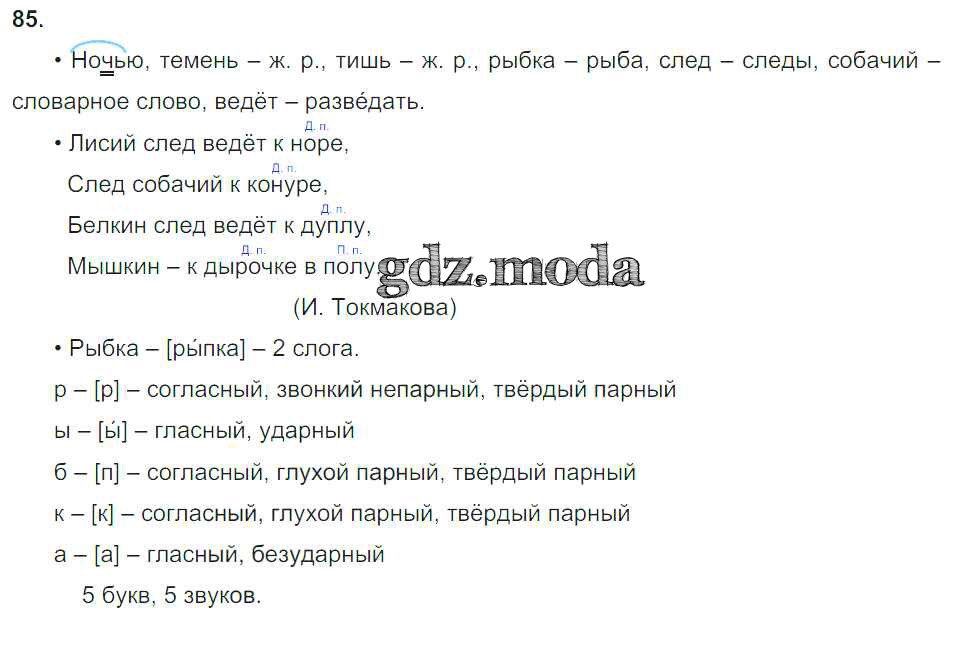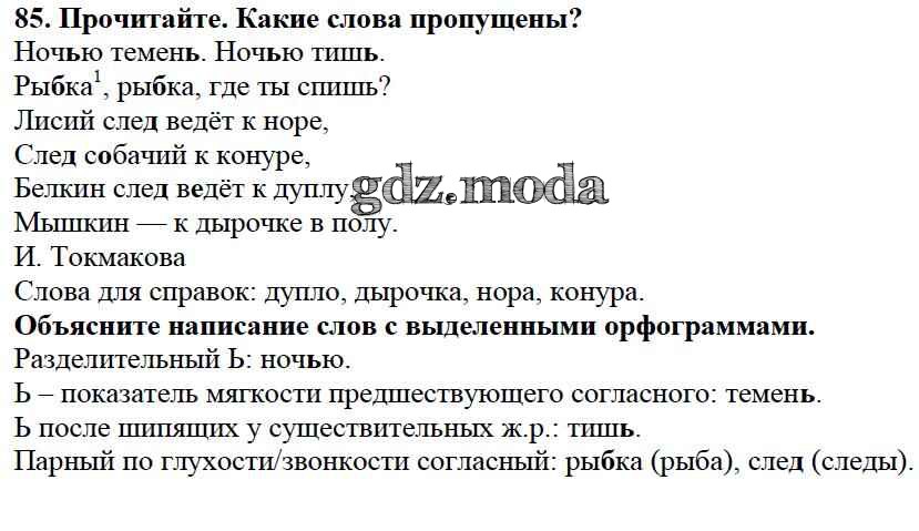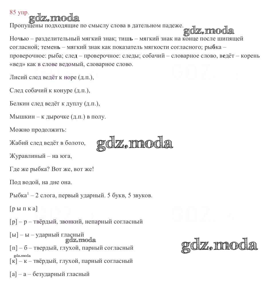ОТВЕТ на задание № 85 Учебник по Русскому языку 3 класс Канакина Школа России