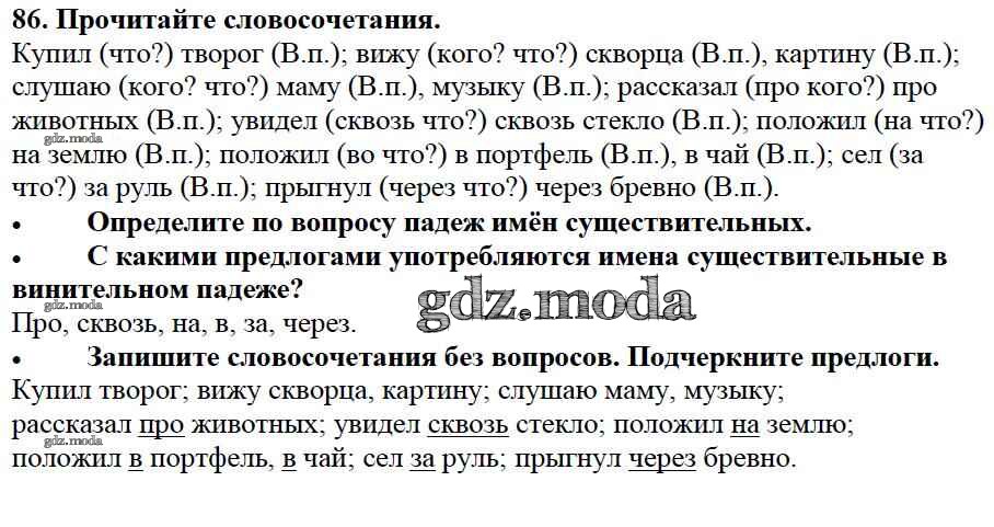 ОТВЕТ на задание № 86 Учебник по Русскому языку 3 класс Канакина Школа России