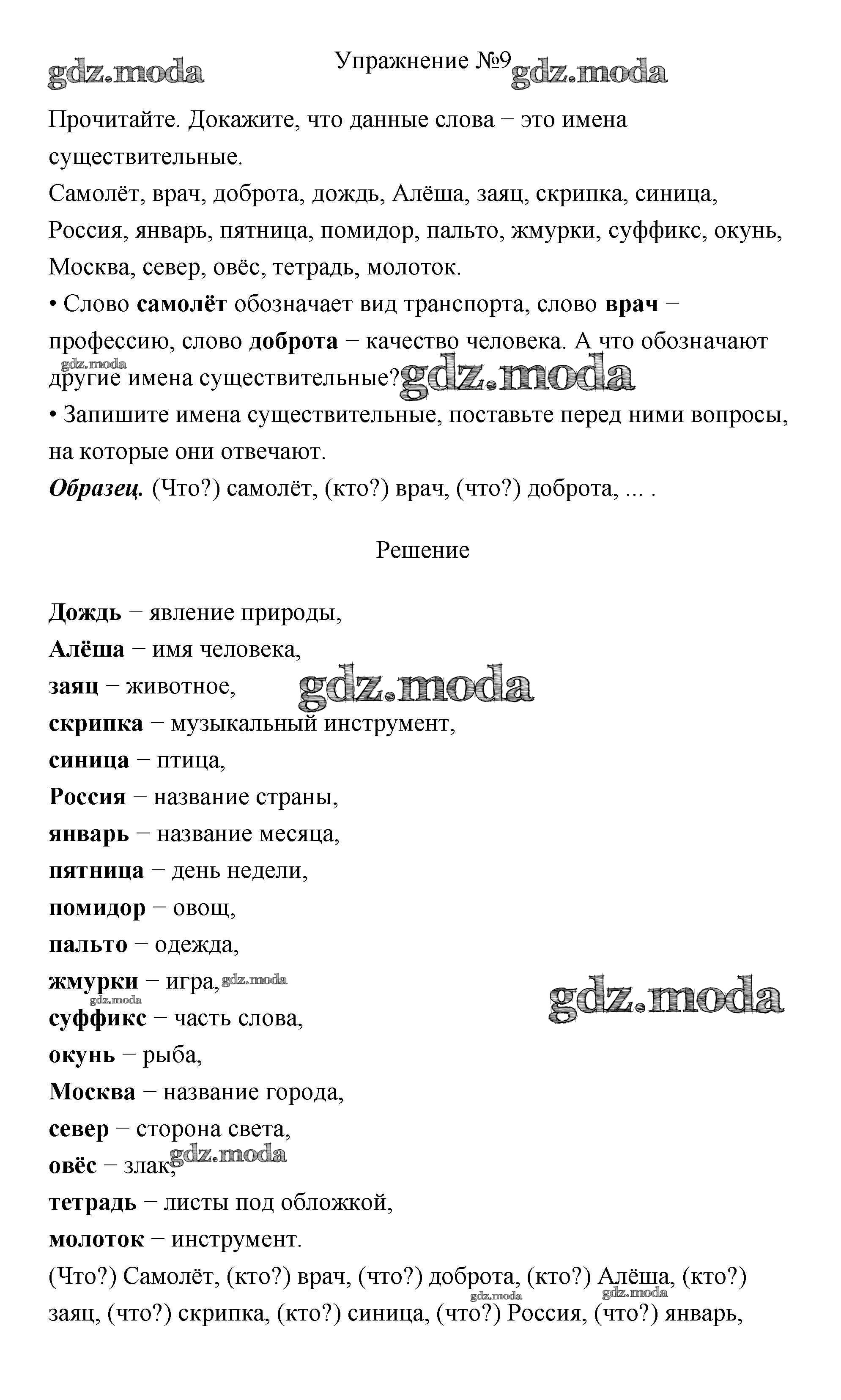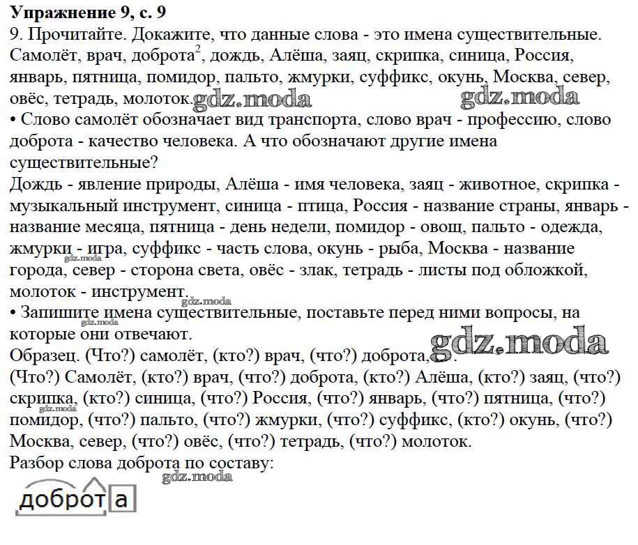 ОТВЕТ на задание № 9 Учебник по Русскому языку 3 класс Канакина Школа России