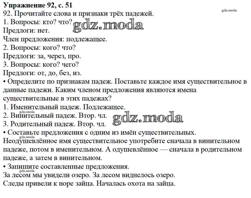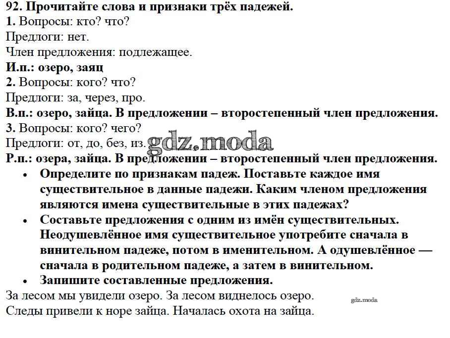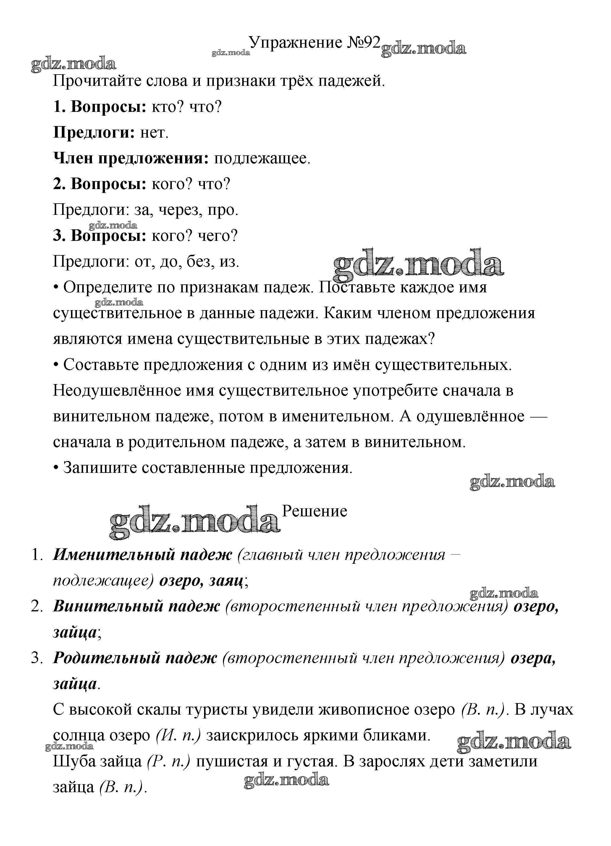 ОТВЕТ на задание № 92 Учебник по Русскому языку 3 класс Канакина Школа России