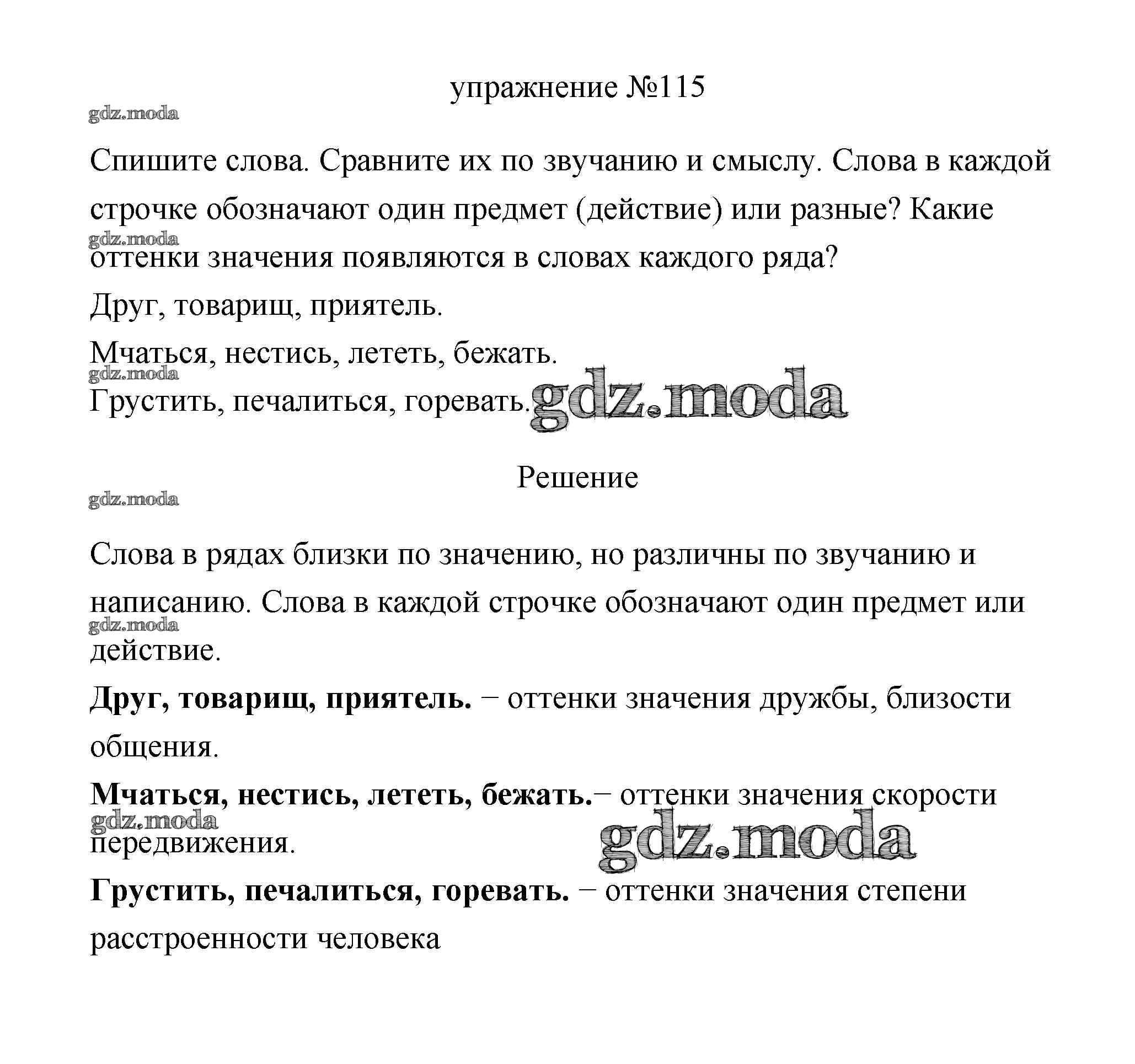 ОТВЕТ на задание № 115 Учебник по Русскому языку 3 класс Климанова Перспектива