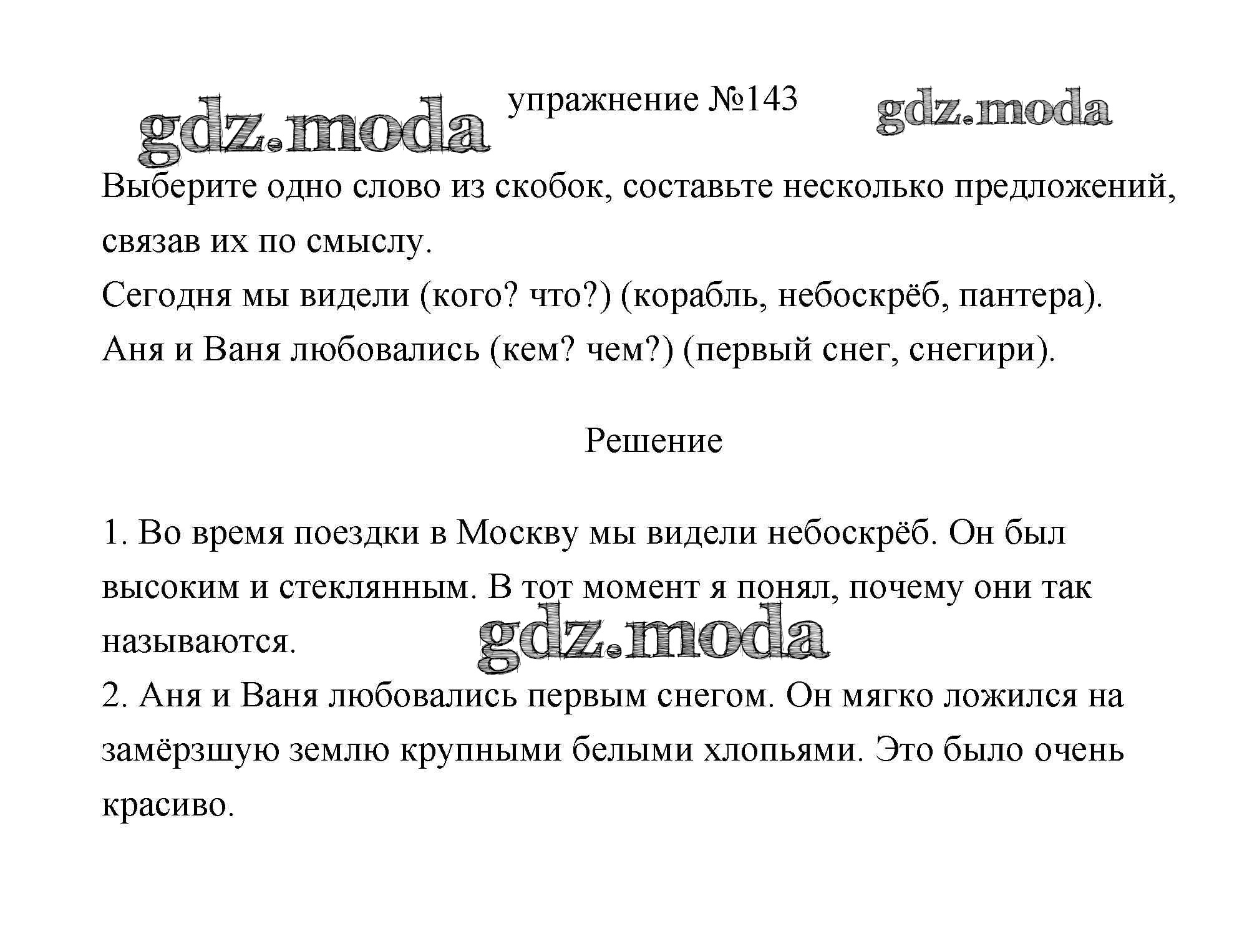 ОТВЕТ на задание № 143 Учебник по Русскому языку 3 класс Климанова Перспектива