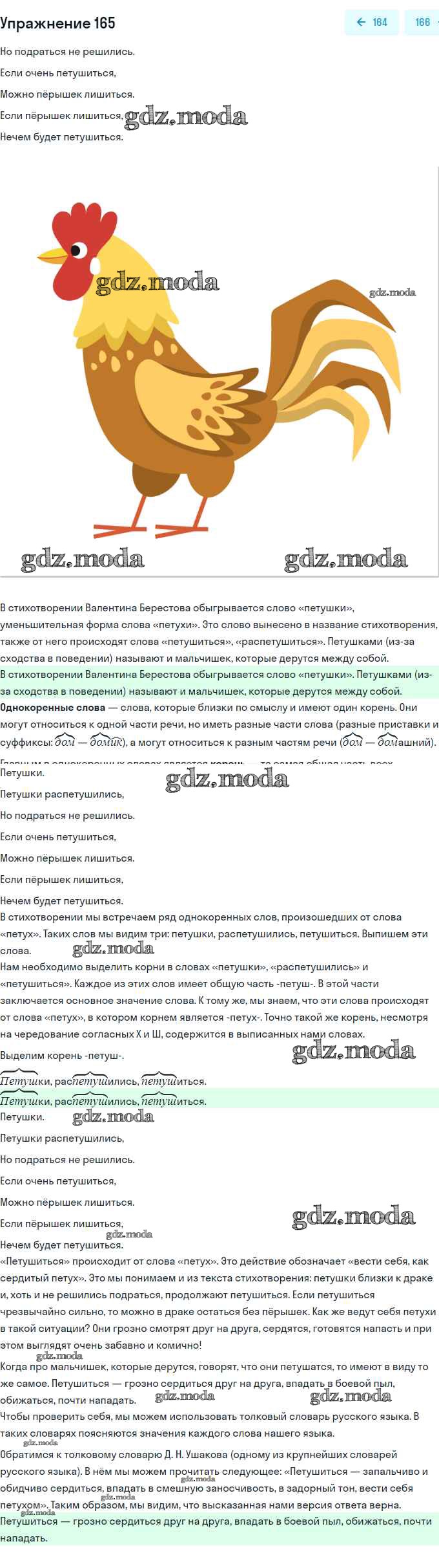 ОТВЕТ на задание № 165 Учебник по Русскому языку 3 класс Климанова Перспектива