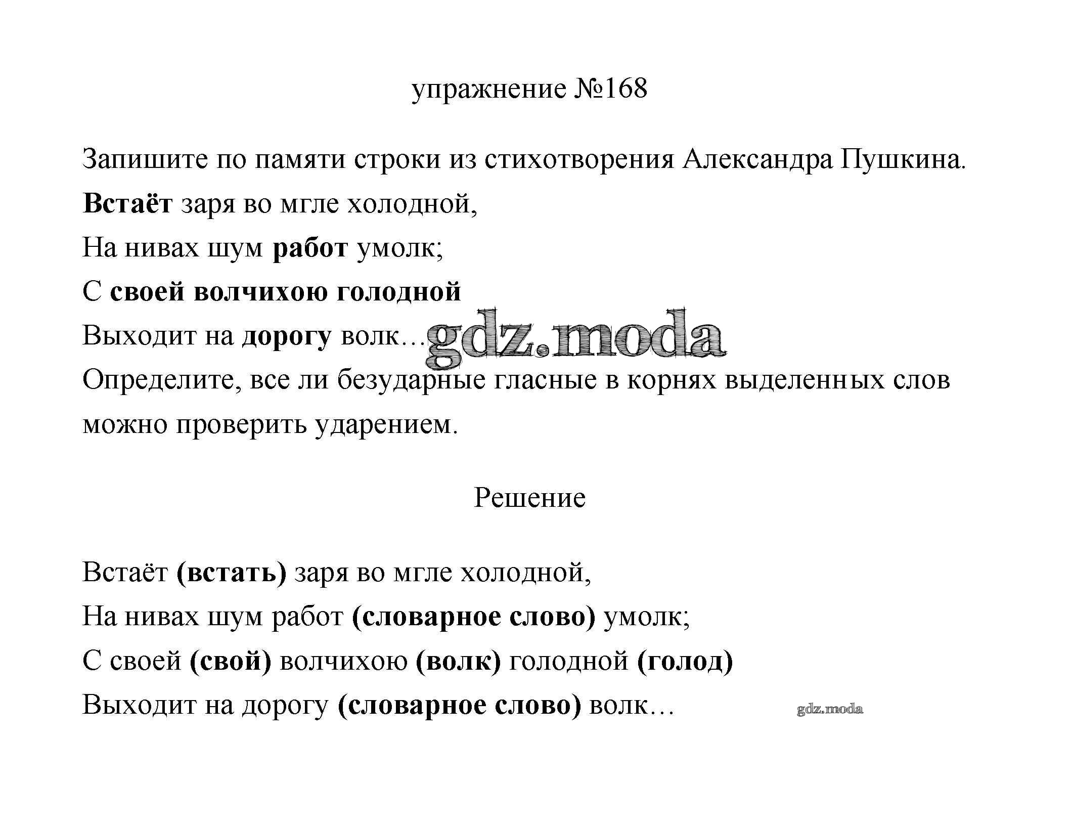 ОТВЕТ на задание № 168 Учебник по Русскому языку 3 класс Климанова Перспектива