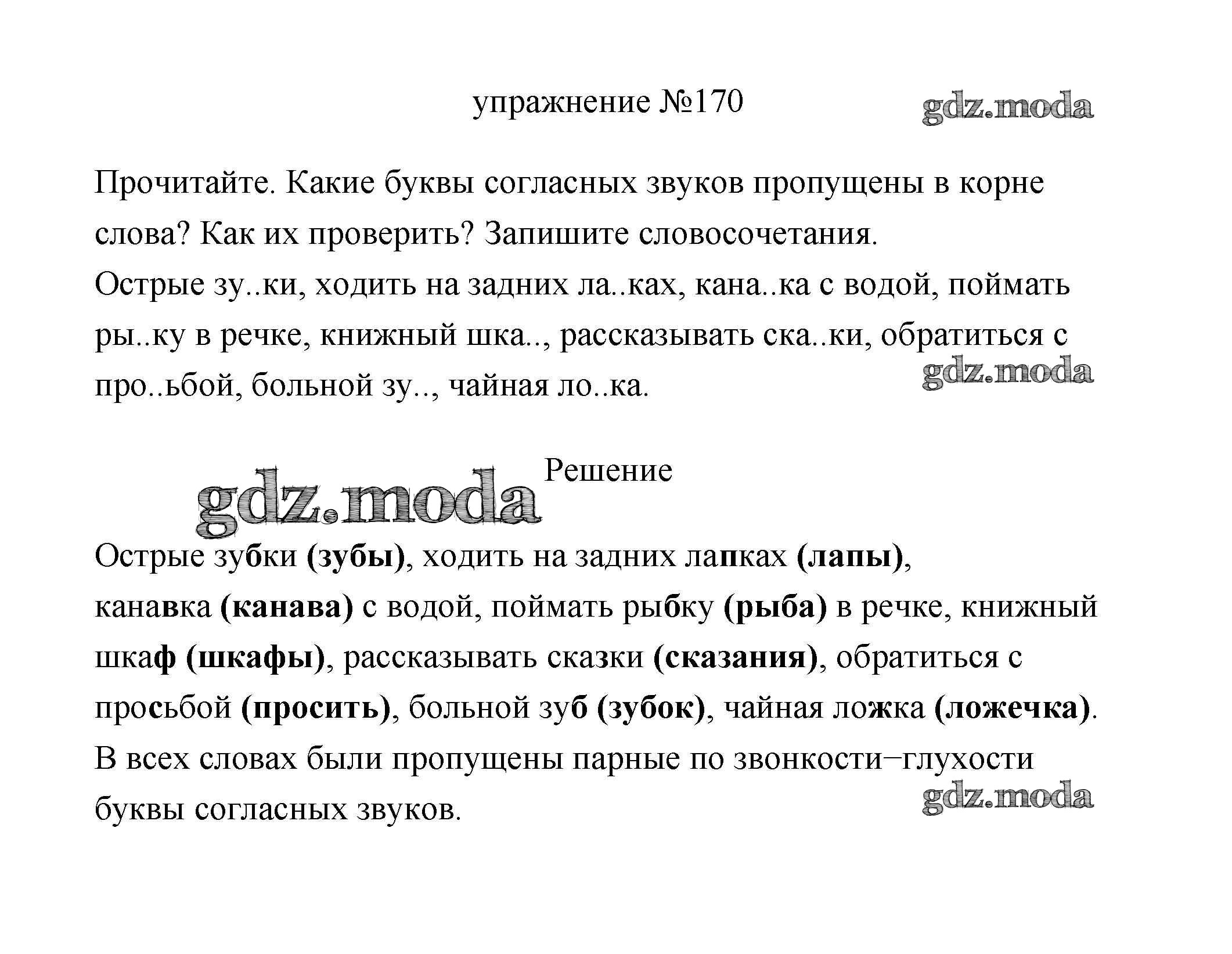 ОТВЕТ на задание № 170 Учебник по Русскому языку 3 класс Климанова Перспектива