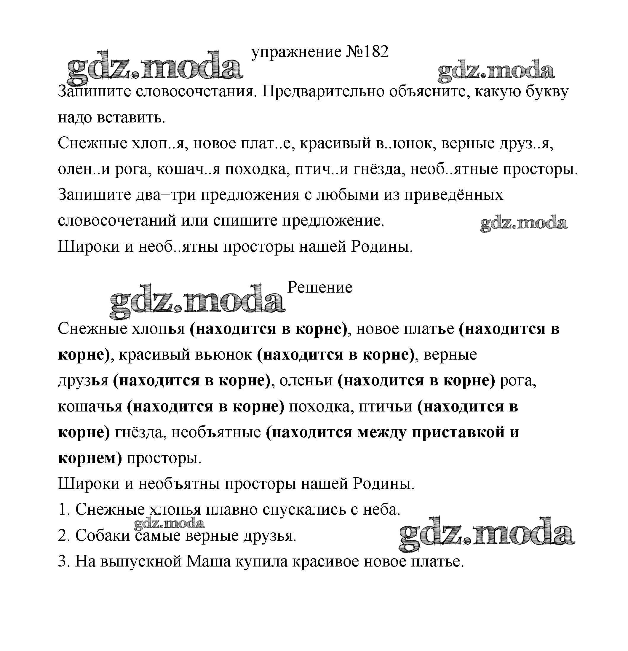 ОТВЕТ на задание № 182 Учебник по Русскому языку 3 класс Климанова Перспектива