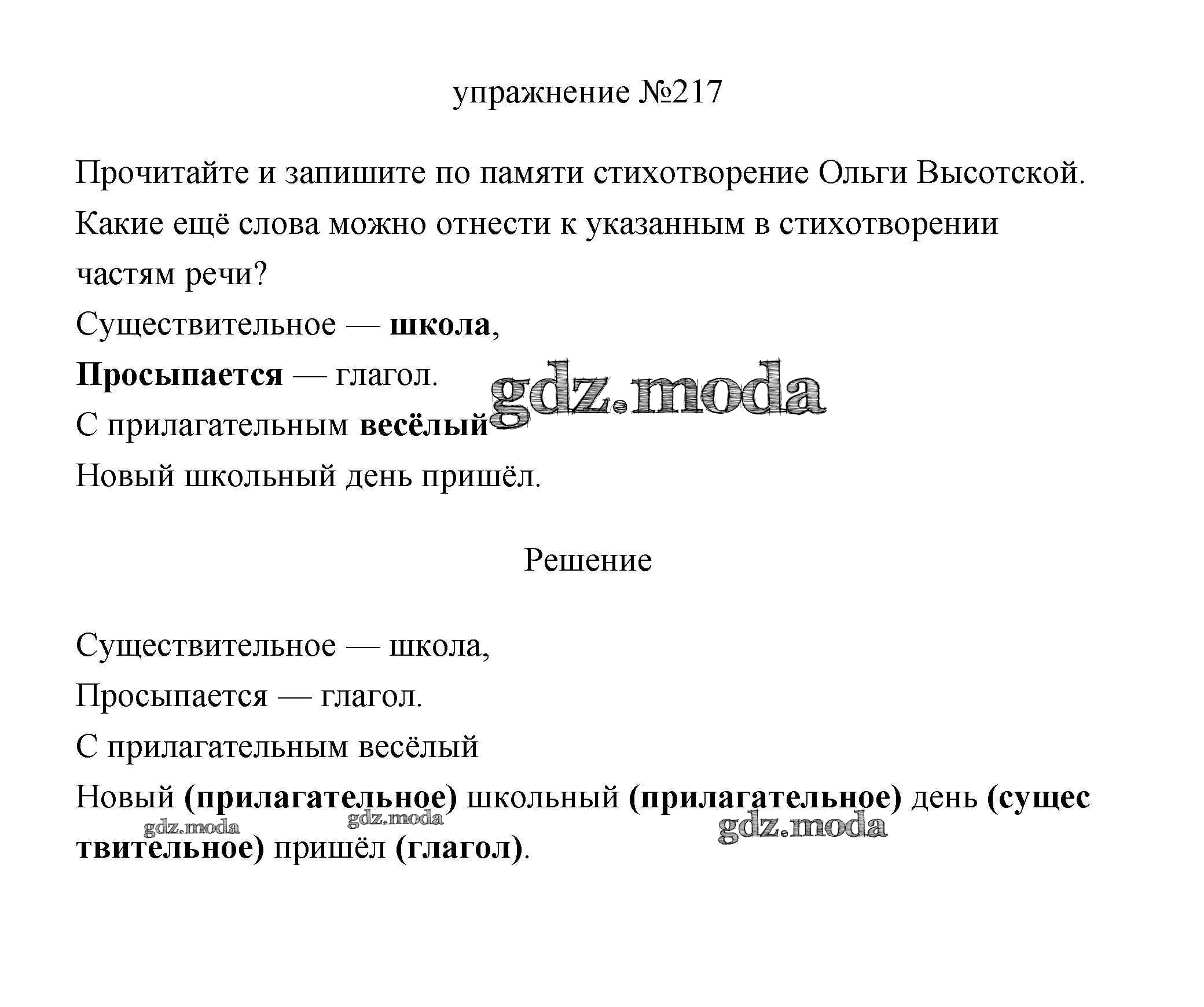 ОТВЕТ на задание № 217 Учебник по Русскому языку 3 класс Климанова Перспектива