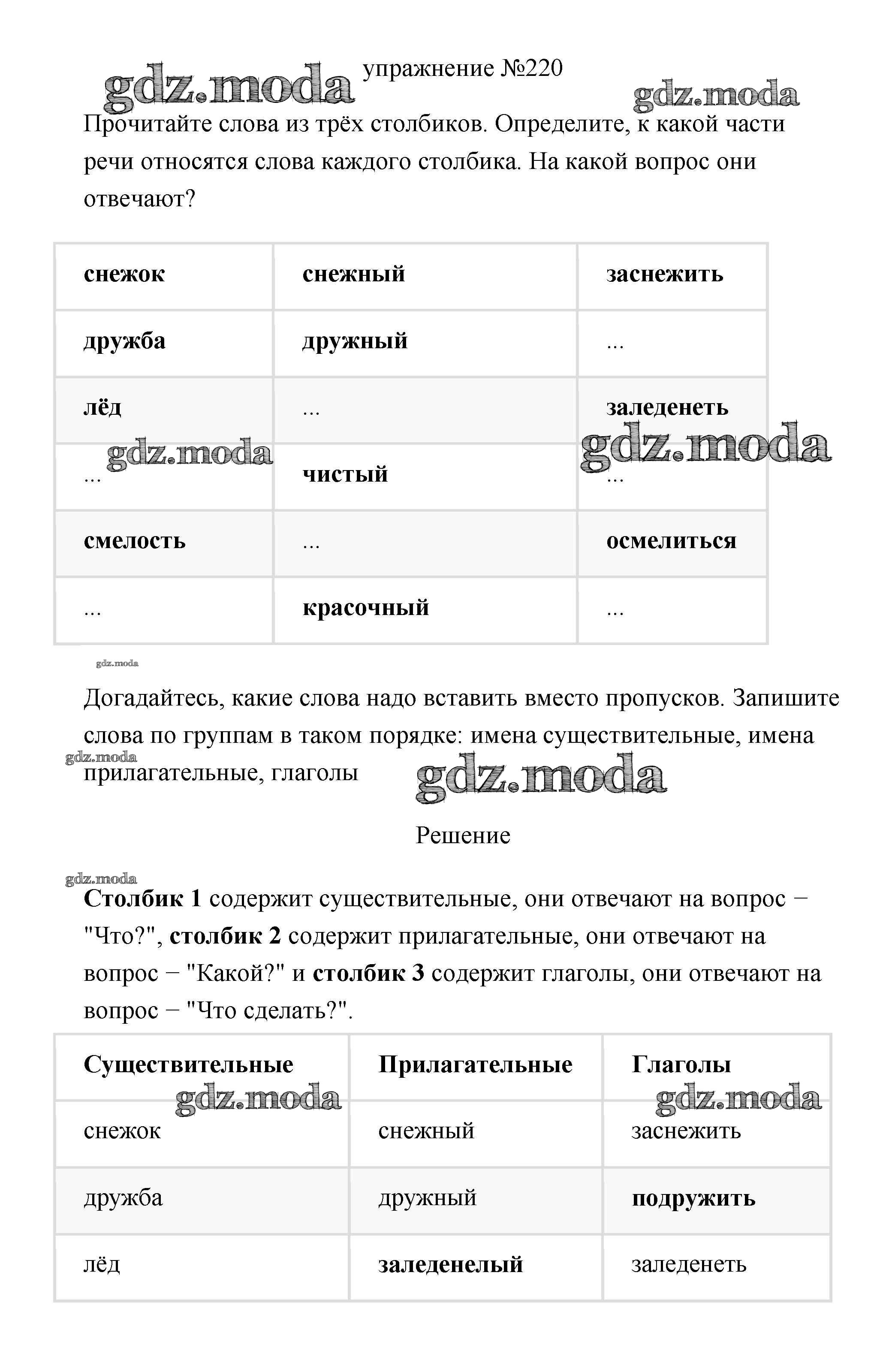 ОТВЕТ на задание № 220 Учебник по Русскому языку 3 класс Климанова Перспектива