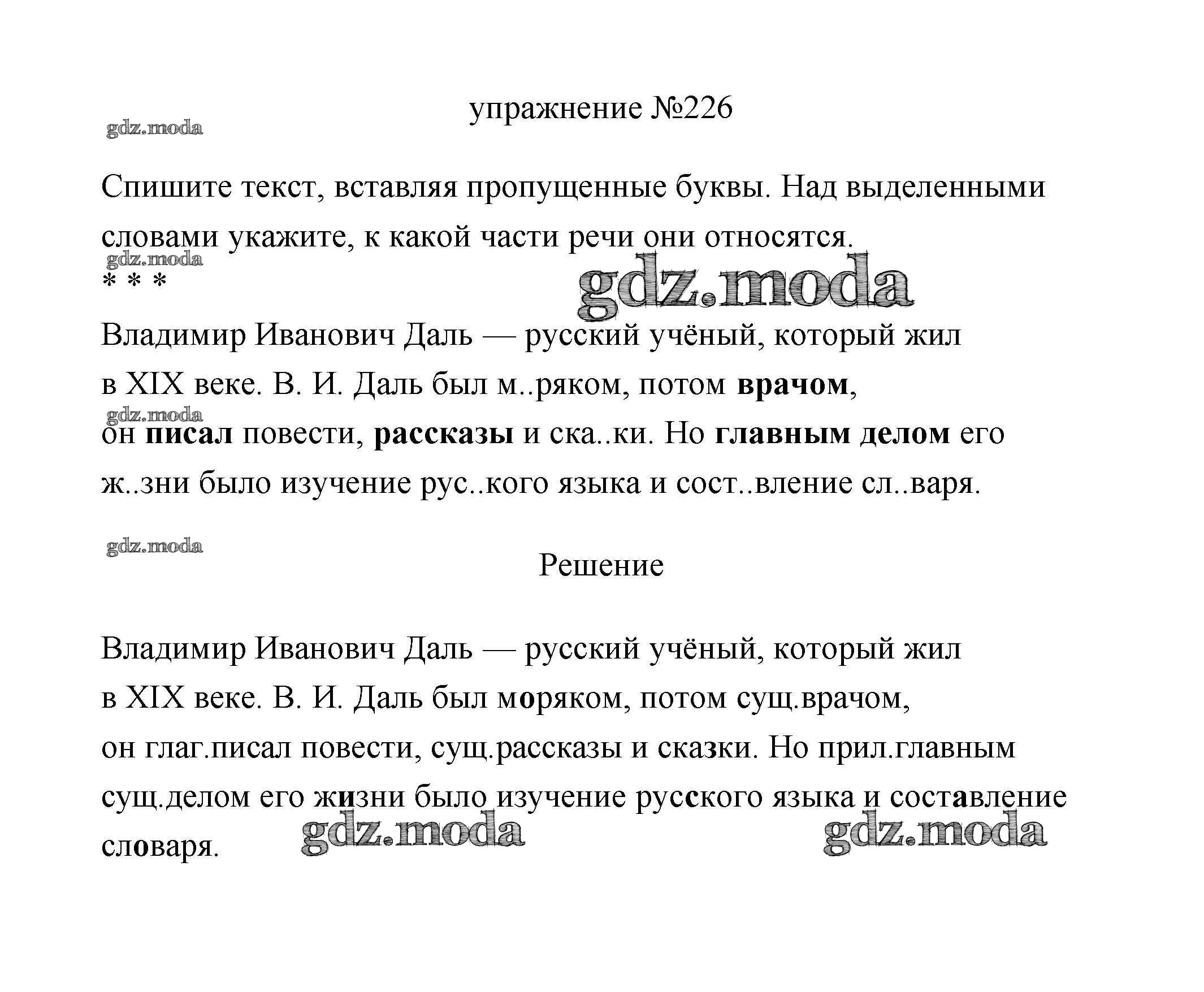 ОТВЕТ на задание № 226 Учебник по Русскому языку 3 класс Климанова Перспектива