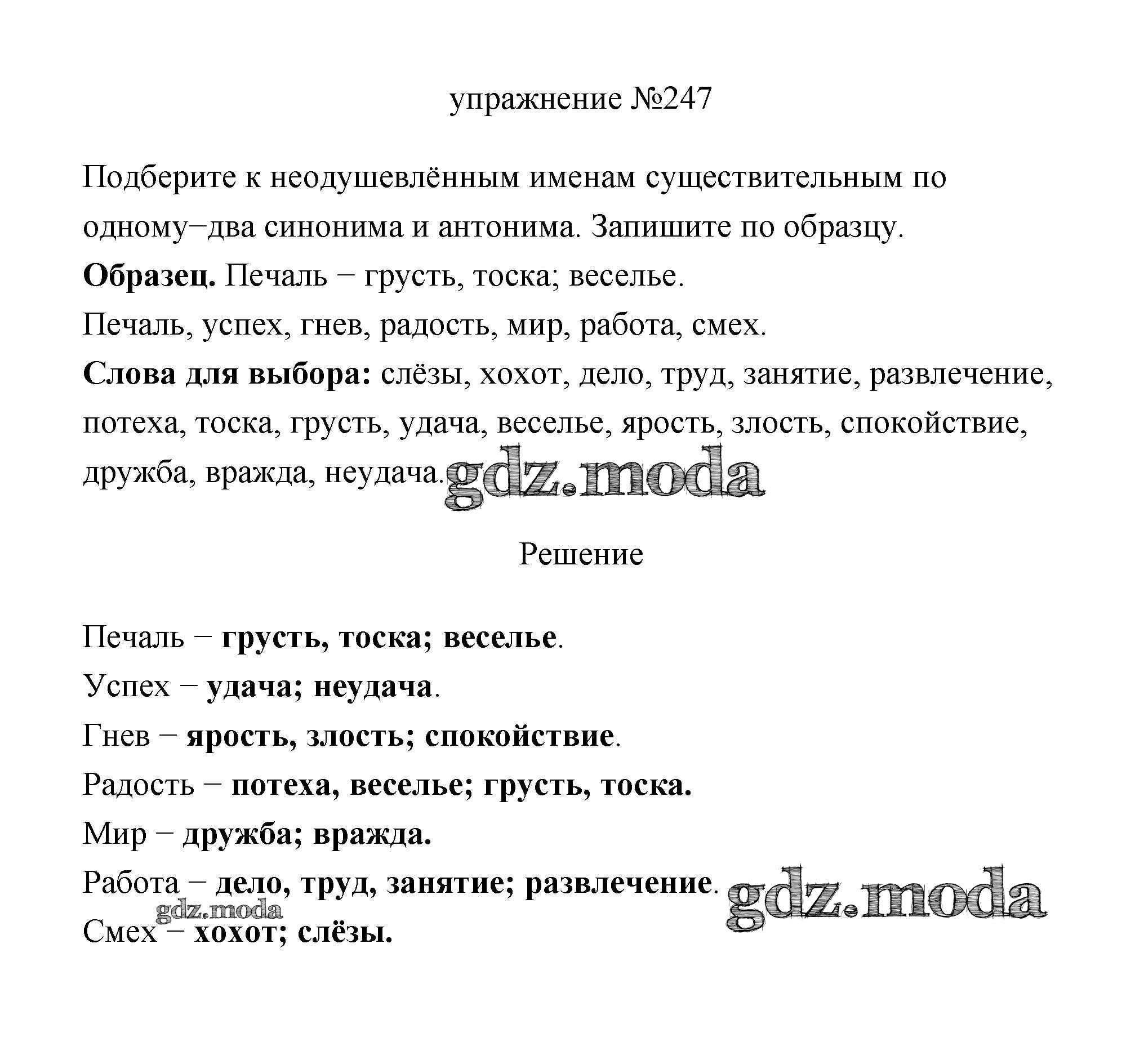 ОТВЕТ на задание № 247 Учебник по Русскому языку 3 класс Климанова Перспектива